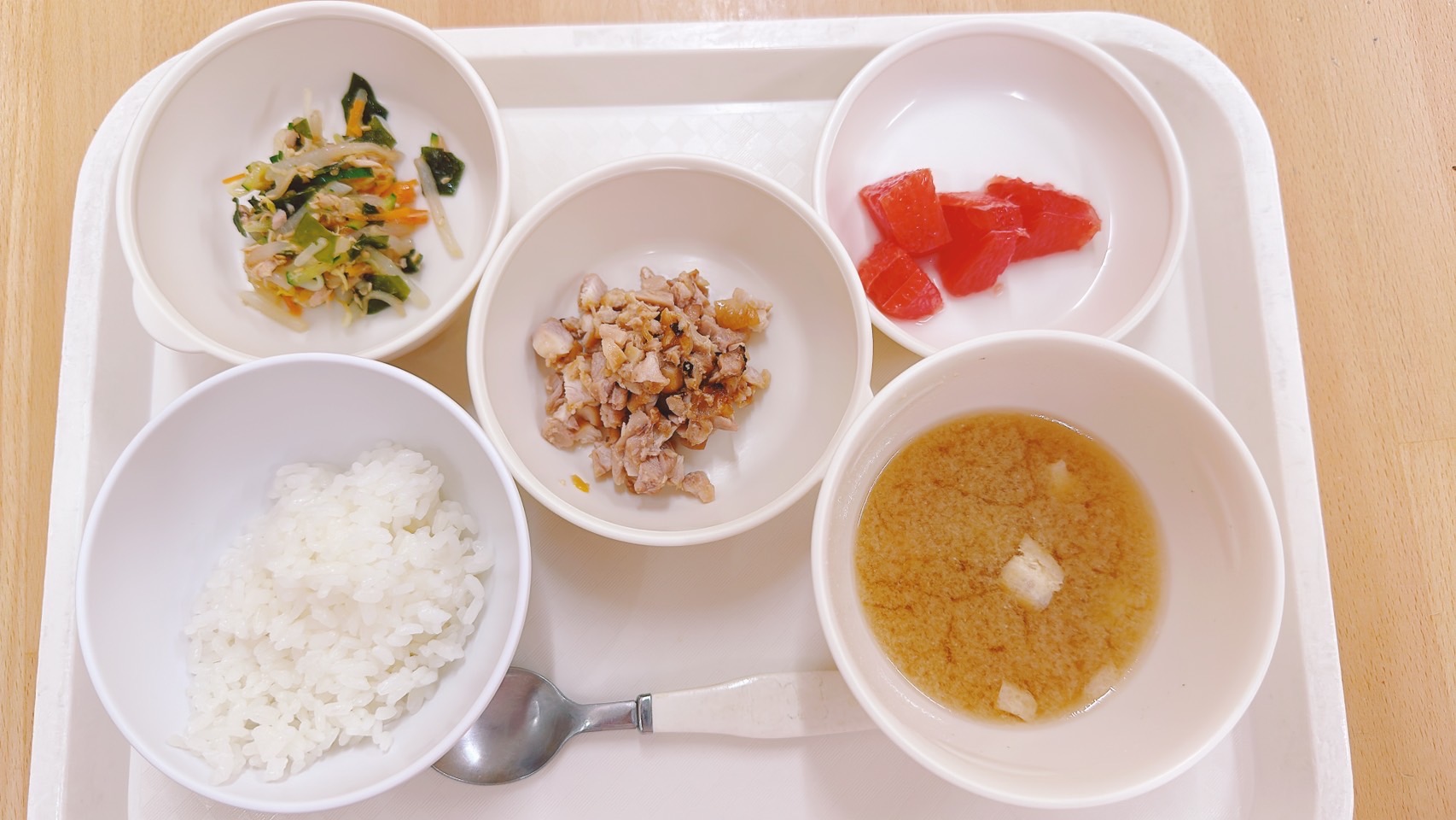 在園児向けのお知らせ 令和6年9月6日(金) 2024.09.06 🍚今日のお給食🍚 白飯 鶏肉のマーマレード焼き ツナとわかめの和え物 みそ汁(なす・油揚げ) グレープフルーツ 《2歳児クラス》 《1歳児クラス》 《0歳児クラス》 《離乳食》 ⭐️今日の一枚!⭐️ 🍒今日のおやつ🍒 蒸しパン この記事のタイトルとURLをコピーする 令和6年9月5日(木) 前の記事 令和6年9月9日(月) 次の記事