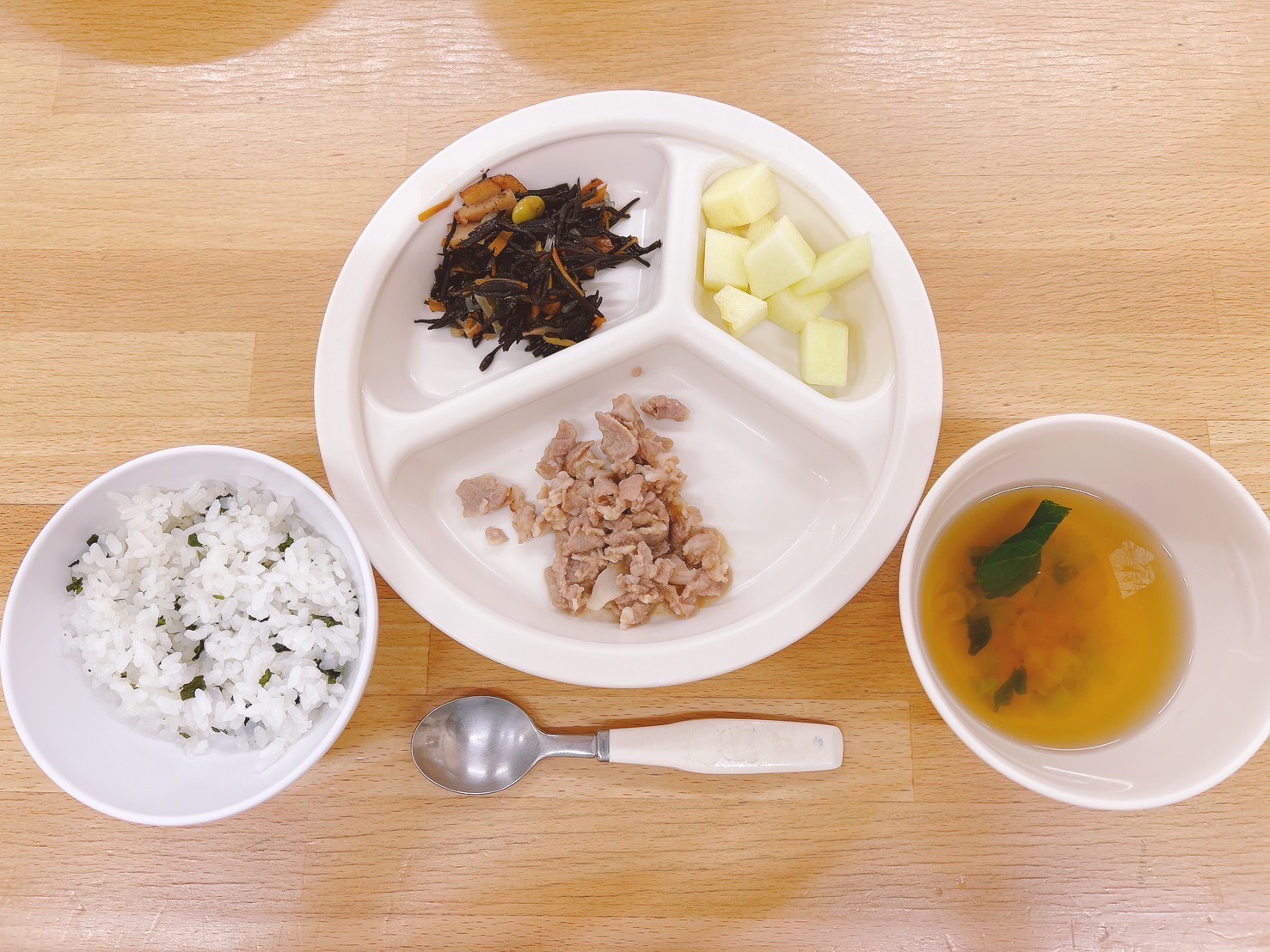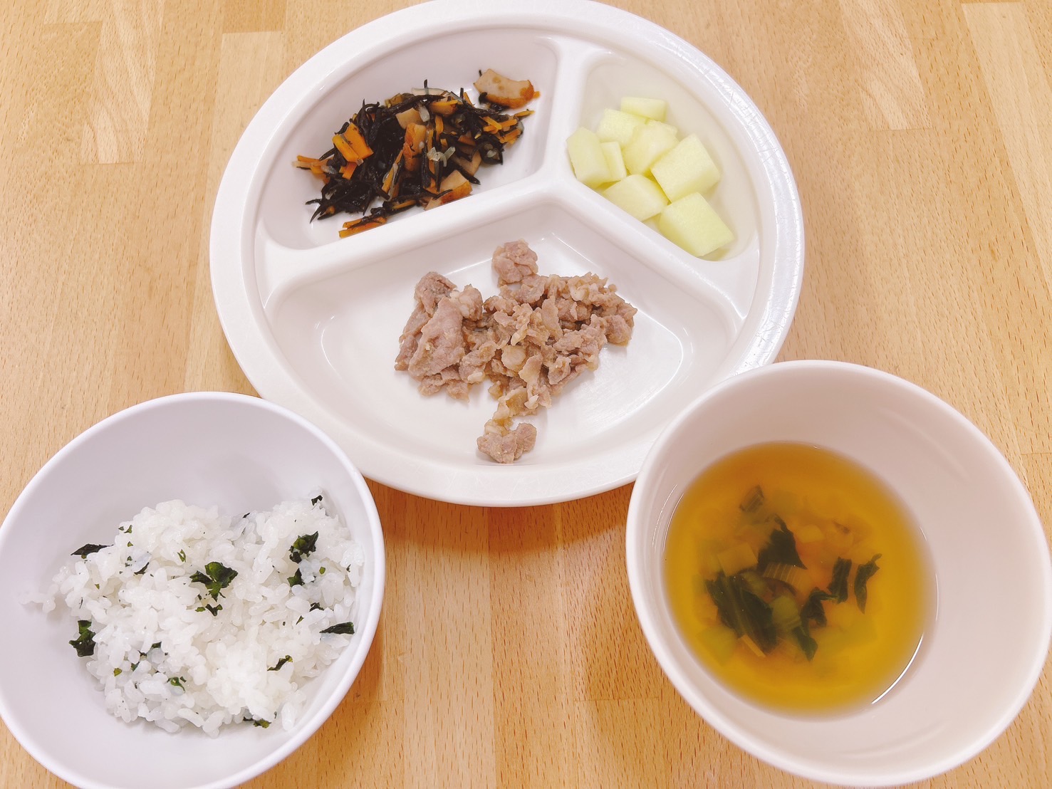 在園児向けのお知らせ 令和6年9月9日(月) 2024.09.09 🍚今日のお給食🍚 わかめごはん 豚肉のみそ焼き ひじきの煮付け すまし汁(小松菜・長葱) メロン🍈 《2歳児クラス》 《1歳児クラス》 《0歳児クラス》 《離乳食》 🌱今日の一枚!🌱 🍒今日のおやつ🍒 ココアラスク 牛乳 この記事のタイトルとURLをコピーする 令和6年9月6日(金) 前の記事 令和6年9月10日(火) 次の記事