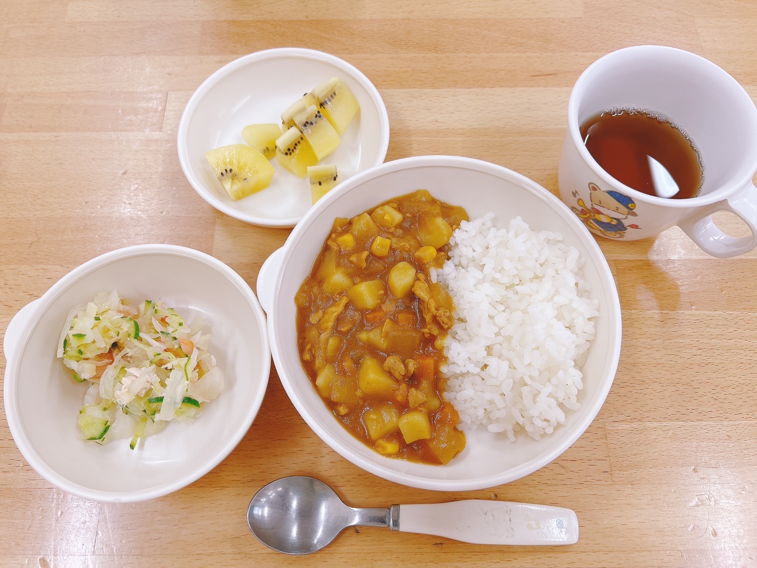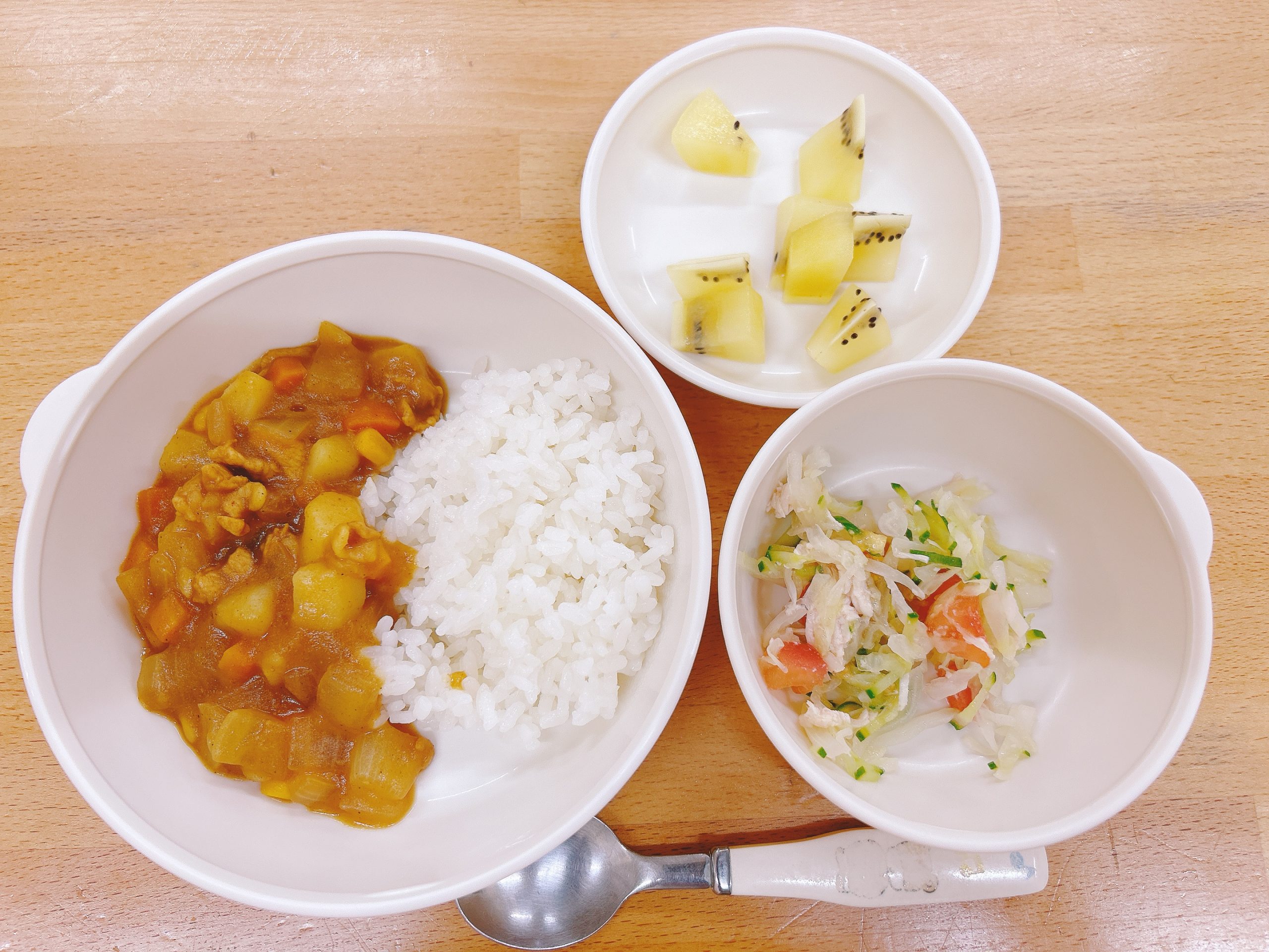 在園児向けのお知らせ 令和6年9月12日(木) 2024.09.12 🍚今日のお給食🍚 白飯 コーンカレー チキンサラダ 麦茶 キウイフルーツ🥝 《2歳児クラス》 《1歳児クラス》 《0歳児クラス》 《離乳食》 ⭐️今日の一枚!⭐️ 🍒今日のおやつ🍒 牛乳・菓子 この記事のタイトルとURLをコピーする 令和6年9月11日(水) 前の記事 令和6年9月13日(金) 次の記事