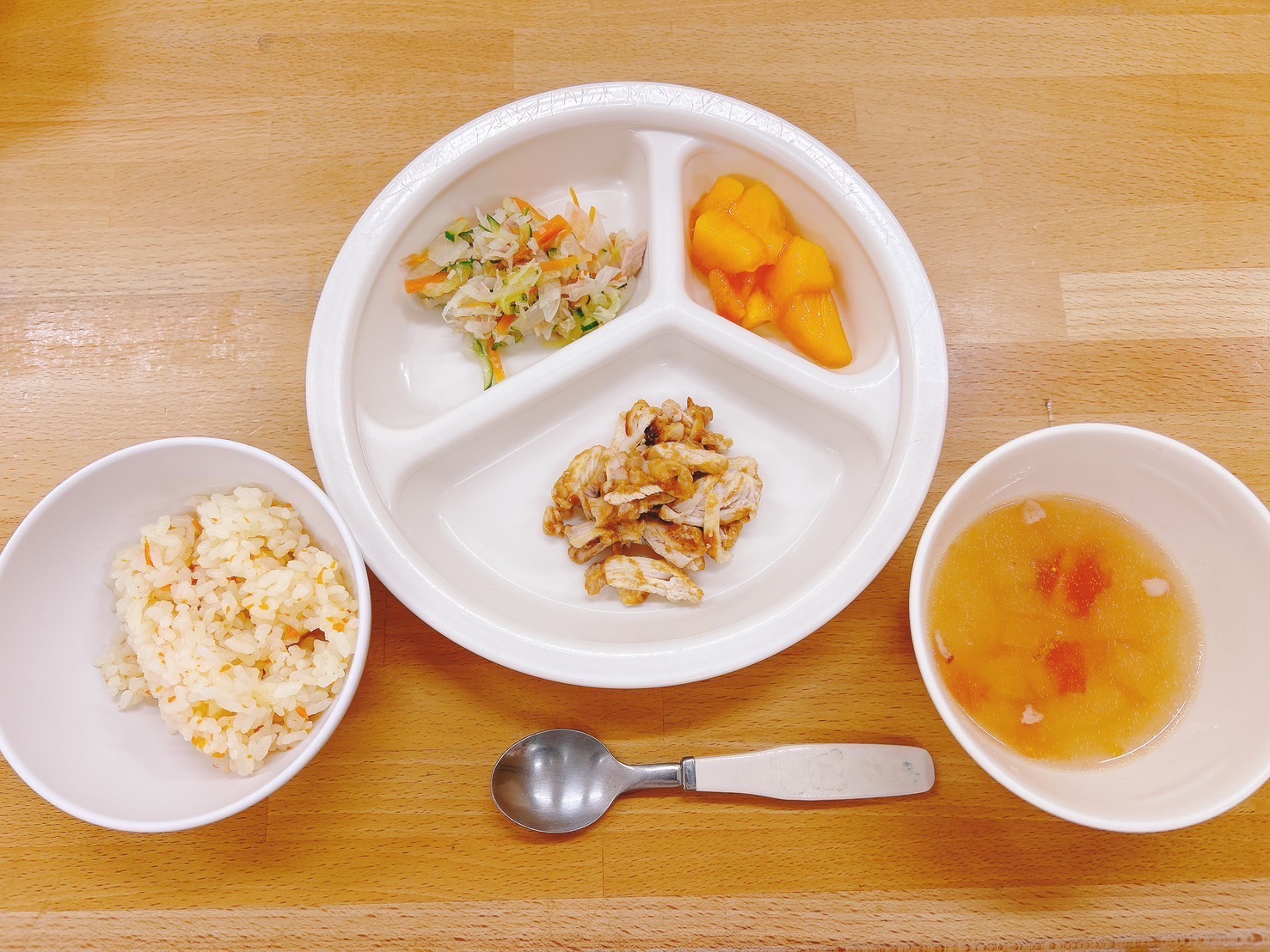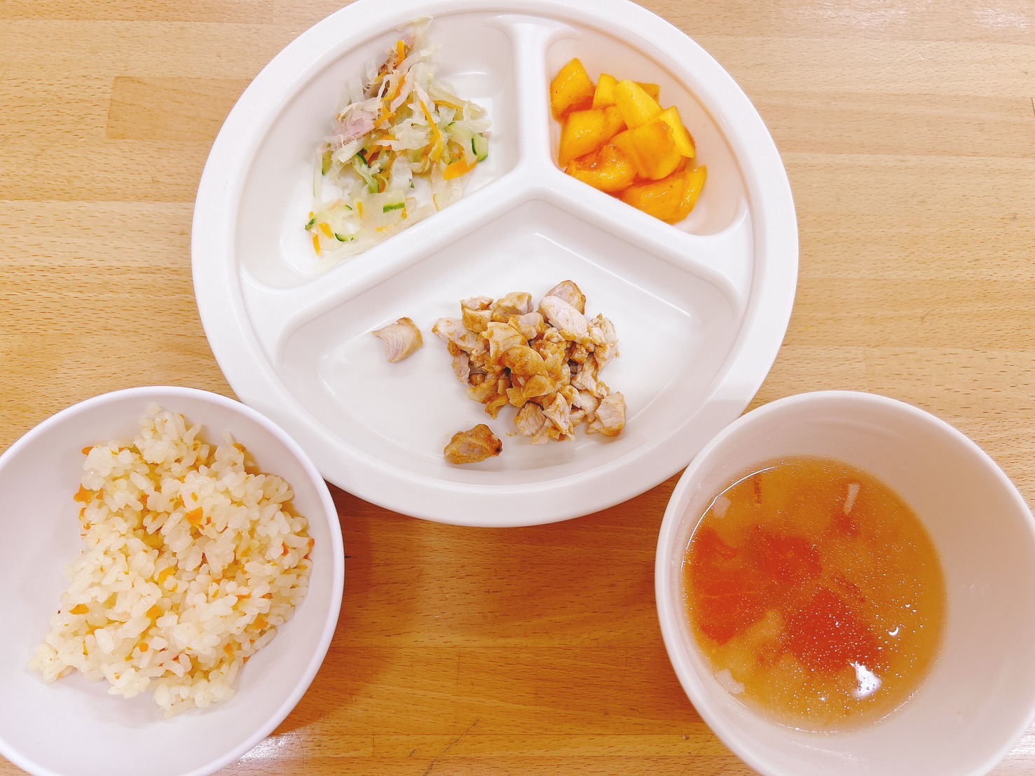 在園児向けのお知らせ 令和6年10月2日(水) 2024.10.02 🍚今日のお給食🍚 キャロットライス🥕 タンドリーチキン ツナサラダ 冬瓜とトマトのスープ🍅 柿 《2歳児クラス》 《1歳児クラス》 《0歳児クラス》 🪴今日の一枚!🪴 🍒今日のおやつ🍒 チーズいももち この記事のタイトルとURLをコピーする 令和6年10月1日(火) 前の記事 令和6年10月3日(木) 次の記事