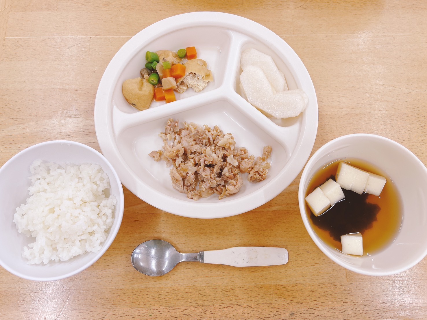 在園児向けのお知らせ 令和6年10月3日(木) 2024.10.03 🍚今日のお給食🍚 白飯 豚肉の胡麻味噌焼き 京がんもと野菜の煮物 すまし汁(わかめ・はんぺん) 梨 《2歳児クラス》 《1歳児クラス》 《0歳児クラス》 《離乳食》 🐶今日の一枚!🐶 🍒今日のおやつ🍒 菓子・牛乳 この記事のタイトルとURLをコピーする 令和6年10月2日(水) 前の記事 令和6年10月4日(金) 次の記事