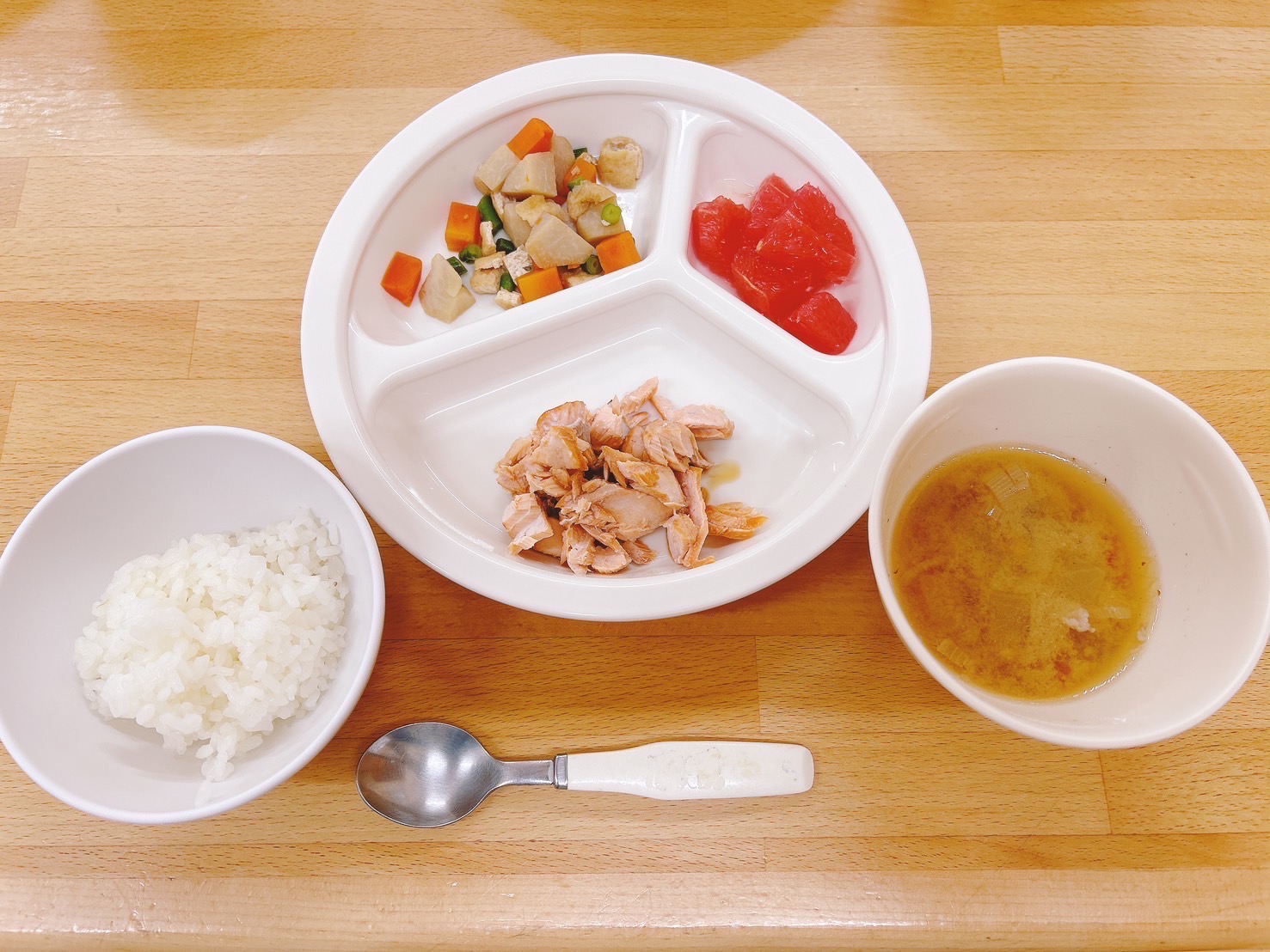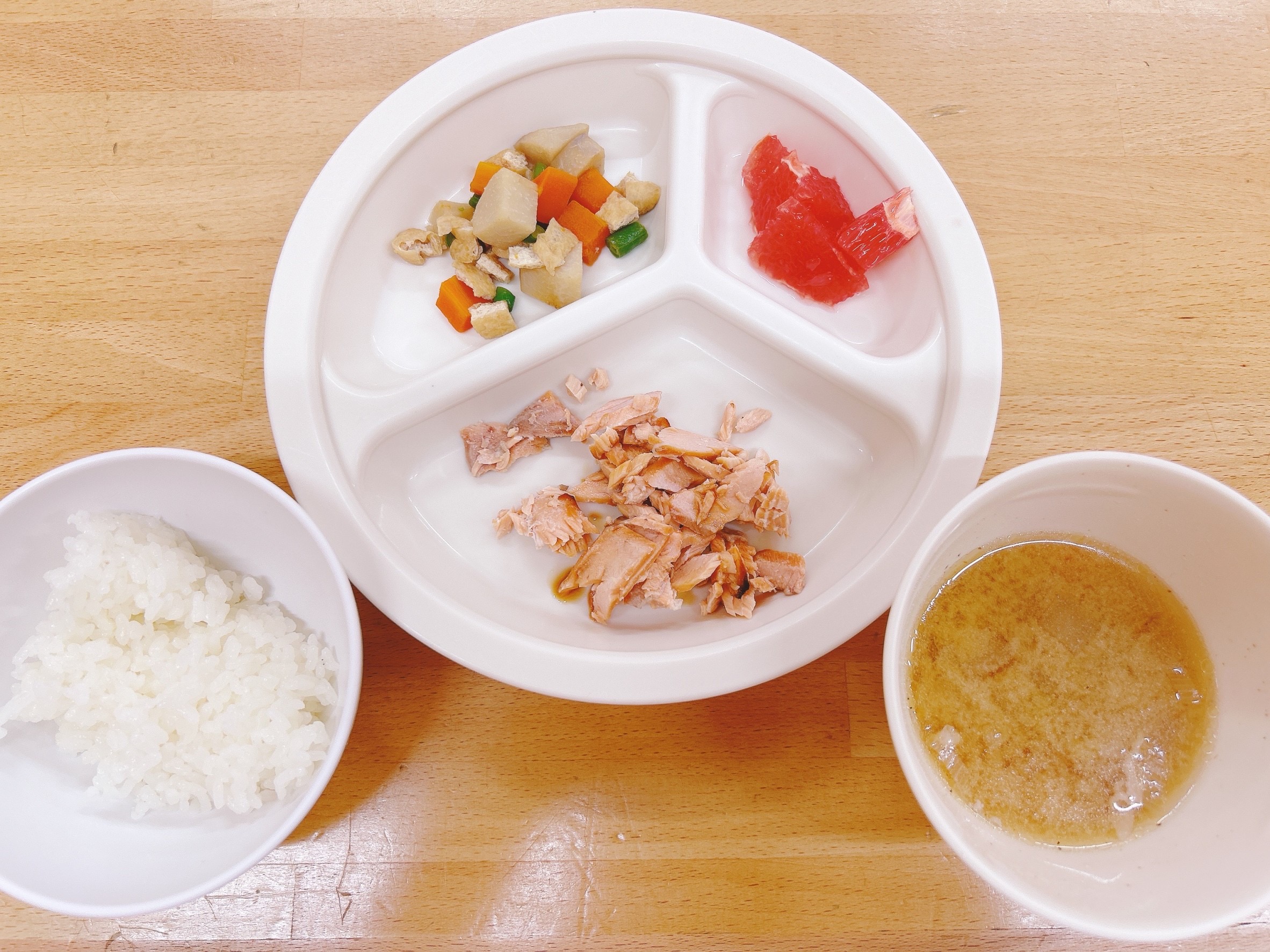 在園児向けのお知らせ 令和6年10月4日(金) 2024.10.04 🍚今日のお給食🍚 白飯 鮭の照焼き 里芋と油揚げの煮物 豚汁 グレープフルーツ 《2歳児クラス》 《1歳児クラス》 《0歳児クラス》 ⭐️今日の一枚!⭐️ 🍒今日のおやつ🍒 ミニマドレーヌ 牛乳 この記事のタイトルとURLをコピーする 令和6年10月3日(木) 前の記事 令和6年10月7日(月) 次の記事