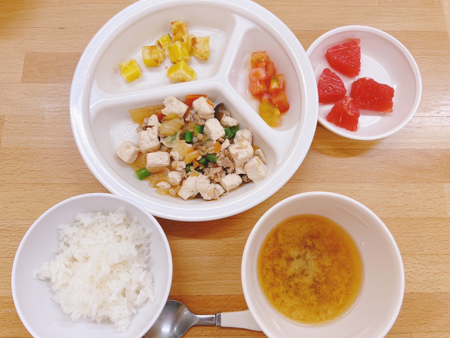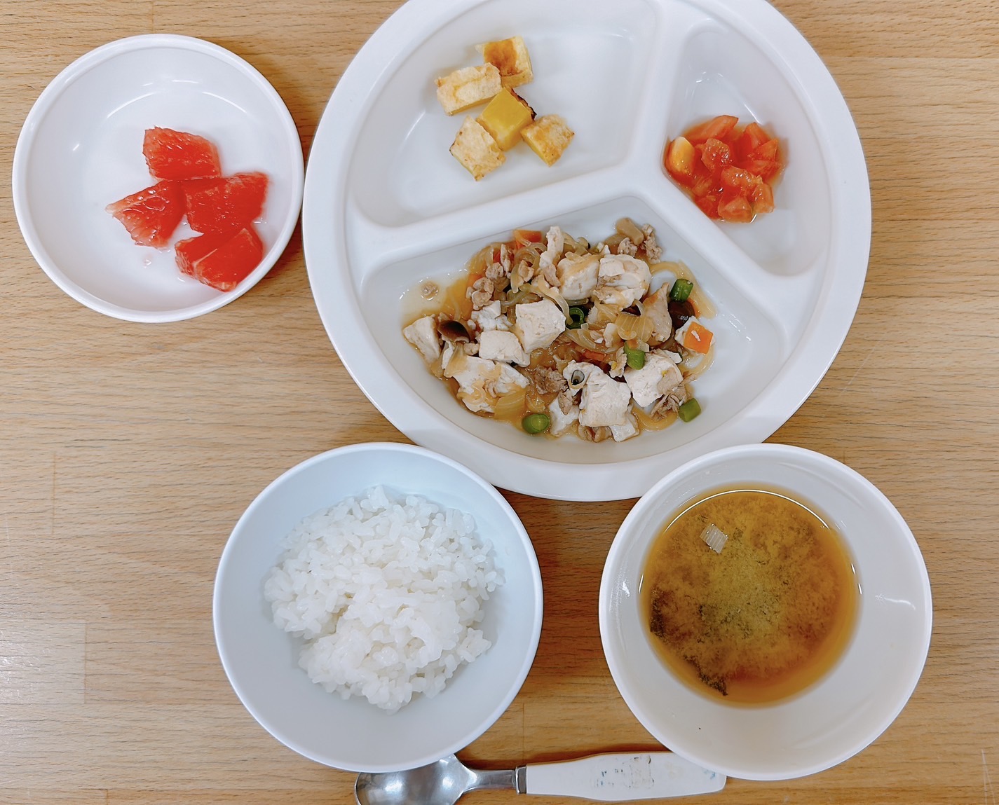 在園児向けのお知らせ 令和6年10月9日(水) 2024.10.09 🍚今日のお給食🍚 白飯 肉豆腐 カットトマト🍅 さつまいもの天ぷら🍠 みそ汁(わかめ・長葱) グレープフルーツ 《2歳児クラス》 《0、1歳児クラス》 《離乳食》 🍎今日の一枚!🍎 🍒今日のおやつ🍒 肉まん・牛乳 この記事のタイトルとURLをコピーする 令和6年10月8日(火) 前の記事 令和6年10月10日(木) 次の記事