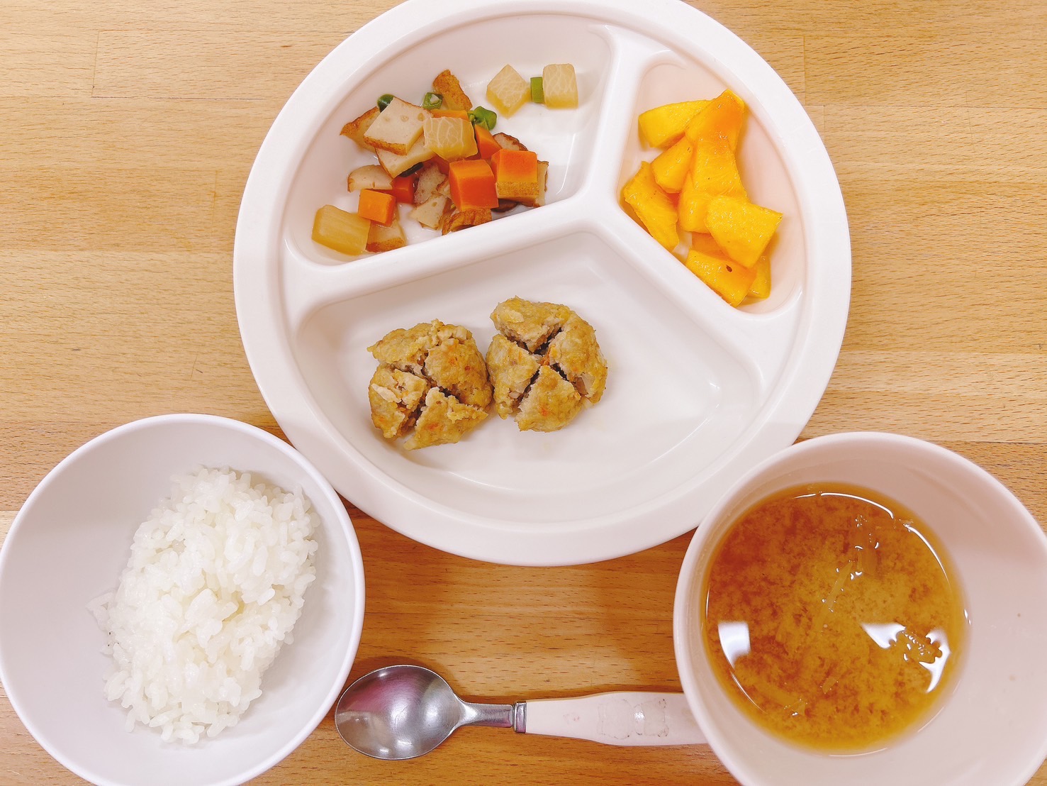 在園児向けのお知らせ 令和6年10月10日(木) 2024.10.10 🍚今日のお給食🍚 白飯 根菜入りとりつくね 大根とさつま揚げの煮物 みそ汁(えのき茸・きゃべつ) 柿 《1・2歳児クラス》 《0歳児クラス》 🍎今日の一枚!🍎 🍒今日のおやつ🍒 菓子・牛乳 この記事のタイトルとURLをコピーする 令和6年10月9日(水) 前の記事 令和6年10月11日(金) 次の記事