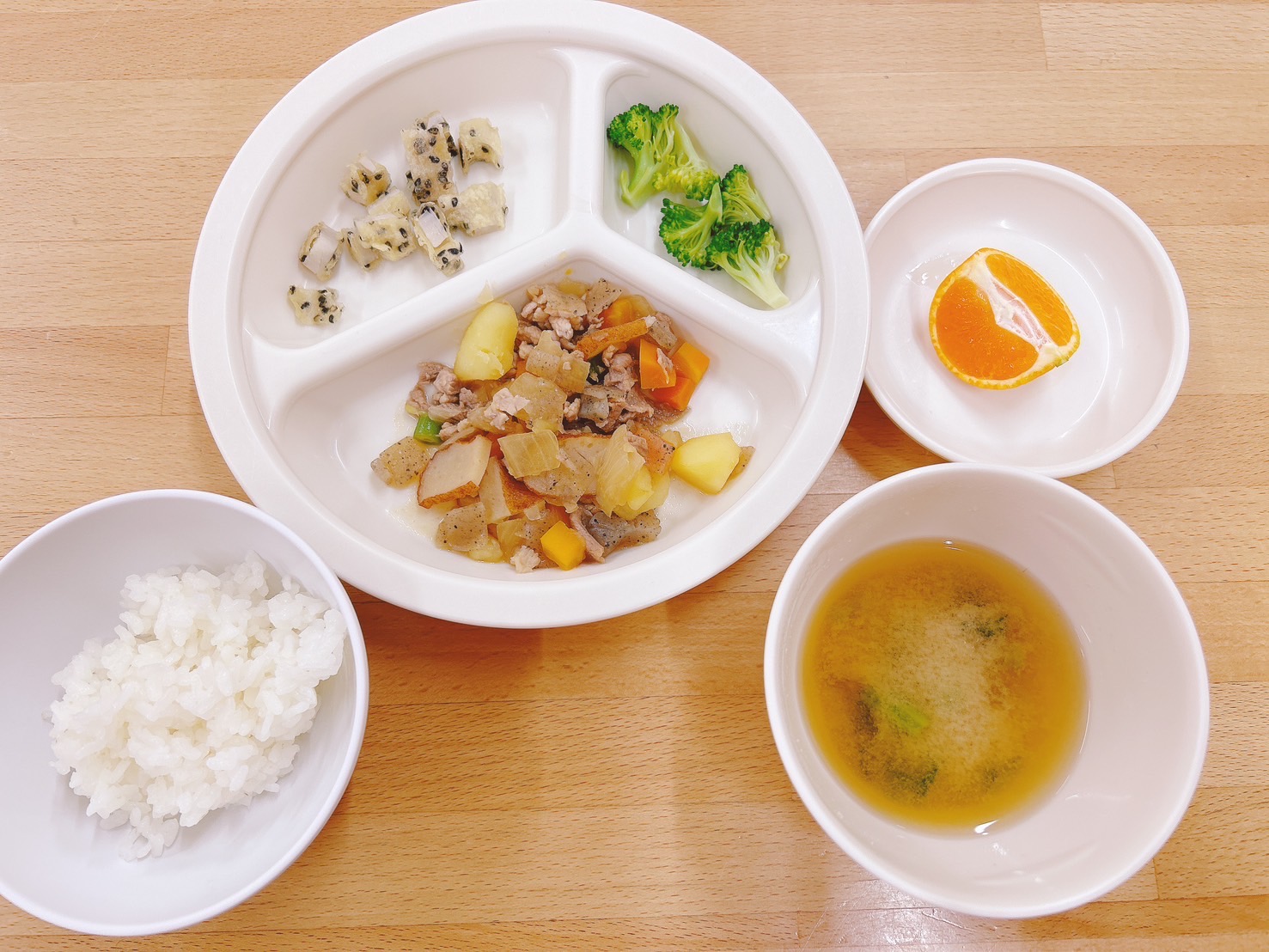 在園児向けのお知らせ 令和6年11月22日(金) 2024.11.22 🍚今日のお給食🍚 白飯 肉じゃが ボイルブロッコリー🥦 れんこん利休揚げ みそ汁(小松菜・長ねぎ) みかん🍊 《2歳児クラス》 《1歳児クラス》 《0歳児クラス》 🍎今日の一枚!🍎 🍒今日のおやつ🍒 菓子・牛乳 この記事のタイトルとURLをコピーする 令和6年11年21日(木) 前の記事 令和6年11月25日(月) 次の記事
