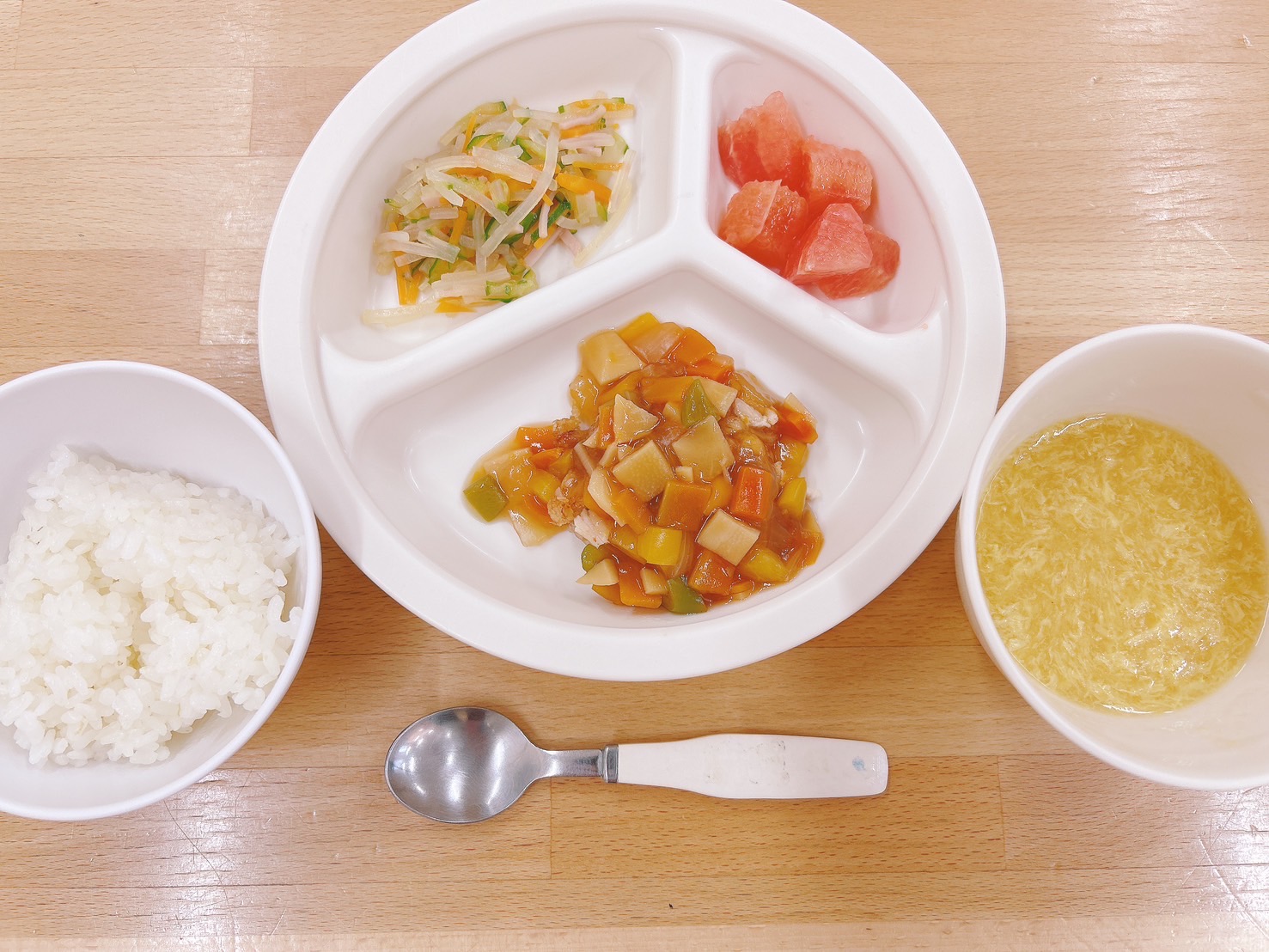 在園児向けのお知らせ 令和6年12月4日水曜日 2024.12.04 🍚今日のお給食🍚 白飯 酢鶏 バンサンスー 中華風コーンスープ グレープフルーツ 《2歳児クラス》 《1歳児クラス》 《0歳児クラス》 🍎今日の一枚!🍎 🍒今日のおやつ🍒 バナナ🍌・牛乳 この記事のタイトルとURLをコピーする 令和6年12月3日(火) 前の記事 令和6年12月5日(木) 次の記事