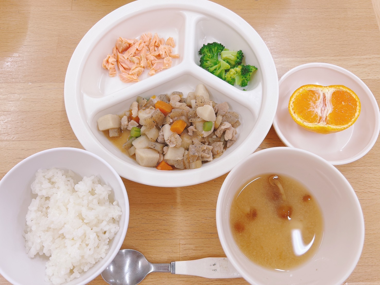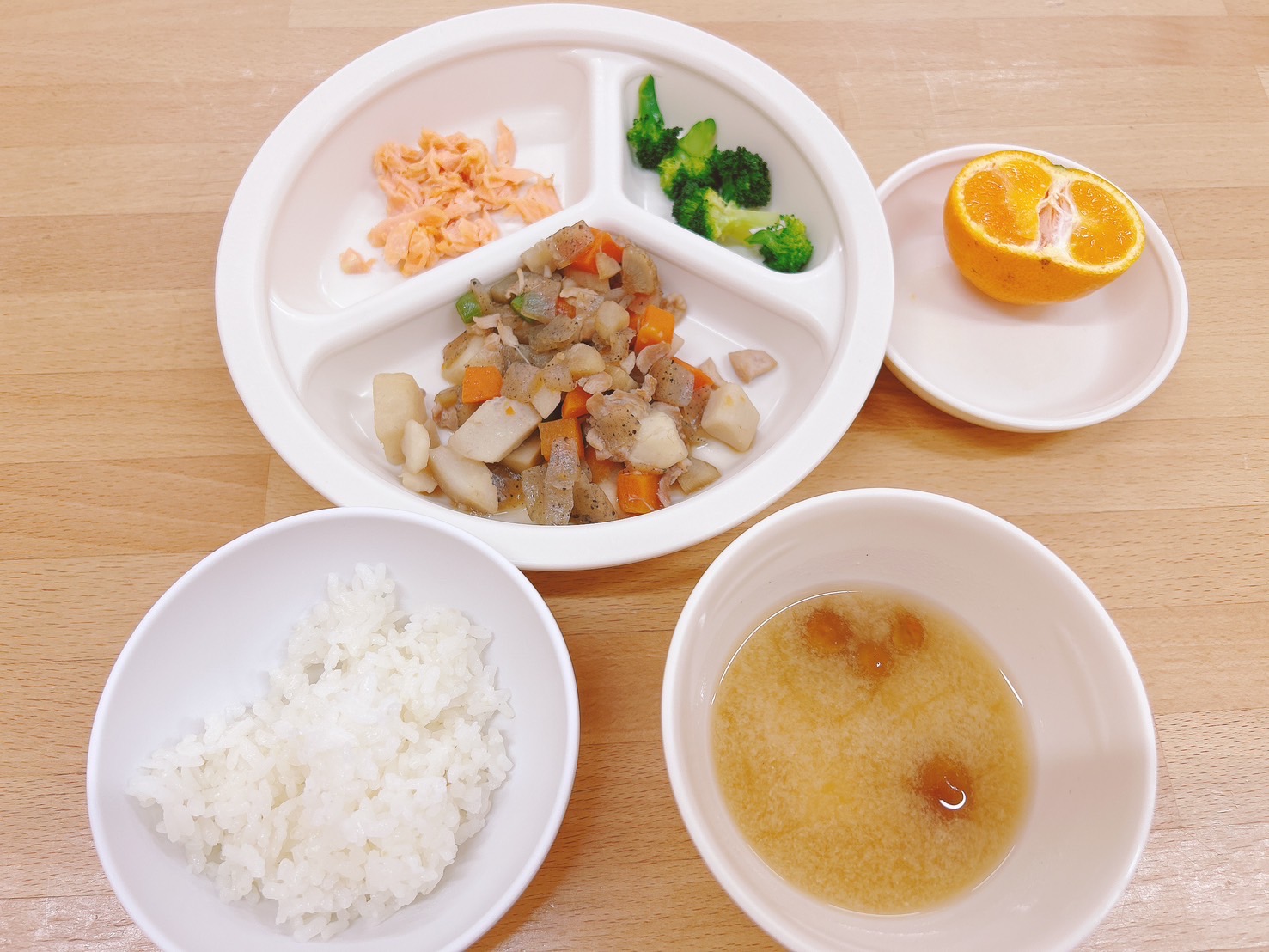 在園児向けのお知らせ 令和7年1月20日(月) 2025.01.20 🍚今日のお給食🍚 白飯 鶏肉と里芋の煮物 ボイルブロッコリー🥦 鮭の塩焼き みそ汁(なめこ・豆腐) みかん🍊 《2歳児クラス》 《1歳児クラス》 《0歳児クラス》 🍎今日の一枚!🍎 🍒今日のおやつ🍒 揚げパン・牛乳 この記事のタイトルとURLをコピーする 令和7年1月17日(金) 前の記事 令和7年1月21日(火) 次の記事