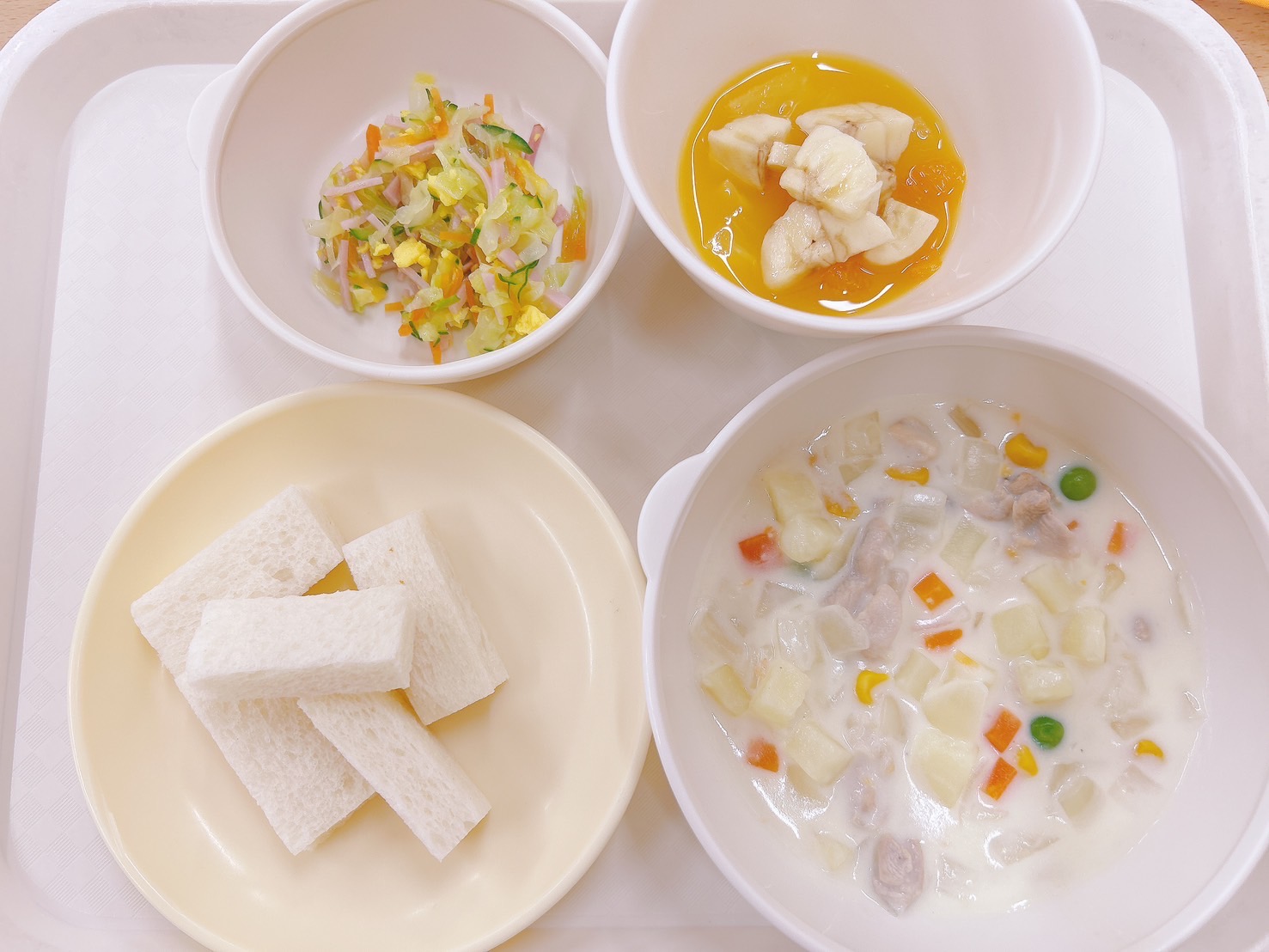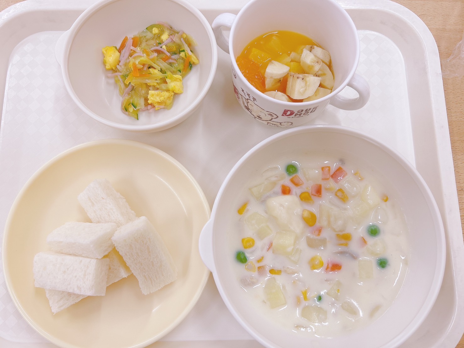 在園児向けのお知らせ 令和7年1月24日(金) 2025.01.24 🍚今日のお給食🍚 食パン クリームシチュー ハム玉サラダ 麦茶 フルーツポンチ 《1、2歳児クラス》 《0歳児クラス》 🍎今日の一枚!🍎 🍒今日のおやつ🍒 菓子・牛乳 この記事のタイトルとURLをコピーする 令和7年1月23日(木) 前の記事 令和7年1月27日(月) 次の記事