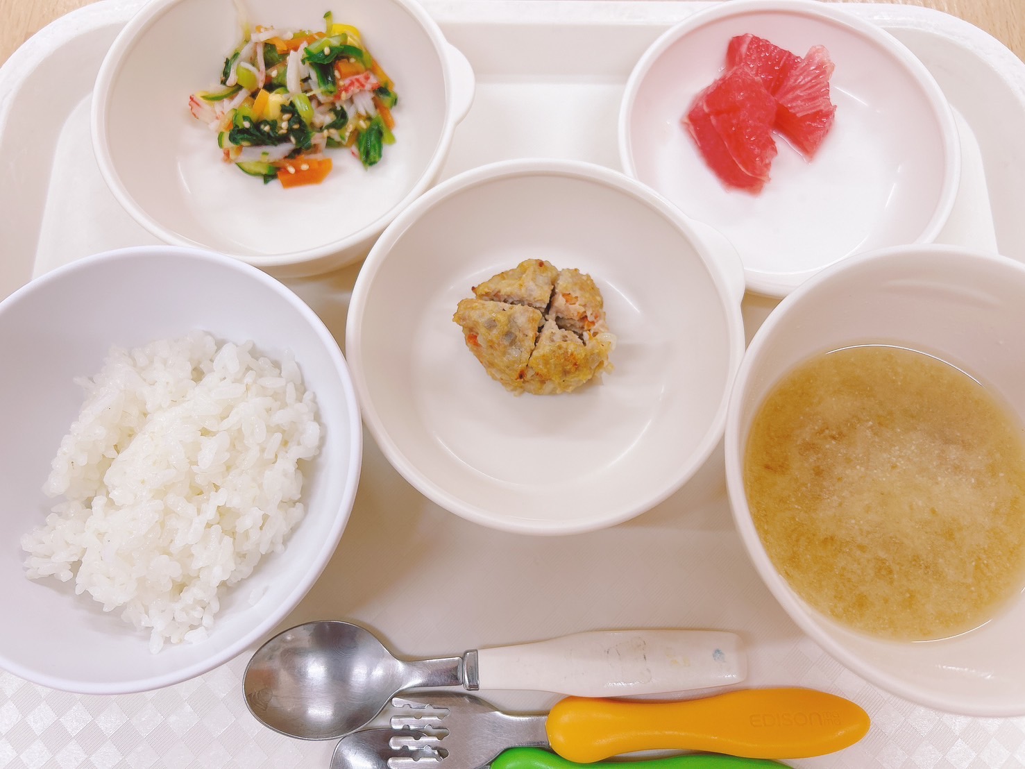 在園児向けのお知らせ 令和7年2月10日(月) 2025.02.10 🍚今日のお給食🍚 白飯 根菜入り鶏つくね かまぼこと青菜の和物 みそ汁(なめこ・長ねぎ) グレープフルーツ 《2歳児クラス》 《1歳児クラス》 《0歳児クラス》 🍎今日の一枚!🍎 🍒今日のおやつ🍒 バナナ🍌 この記事のタイトルとURLをコピーする 令和7年2月7日(金) 前の記事 令和7年2月12日(水) 次の記事