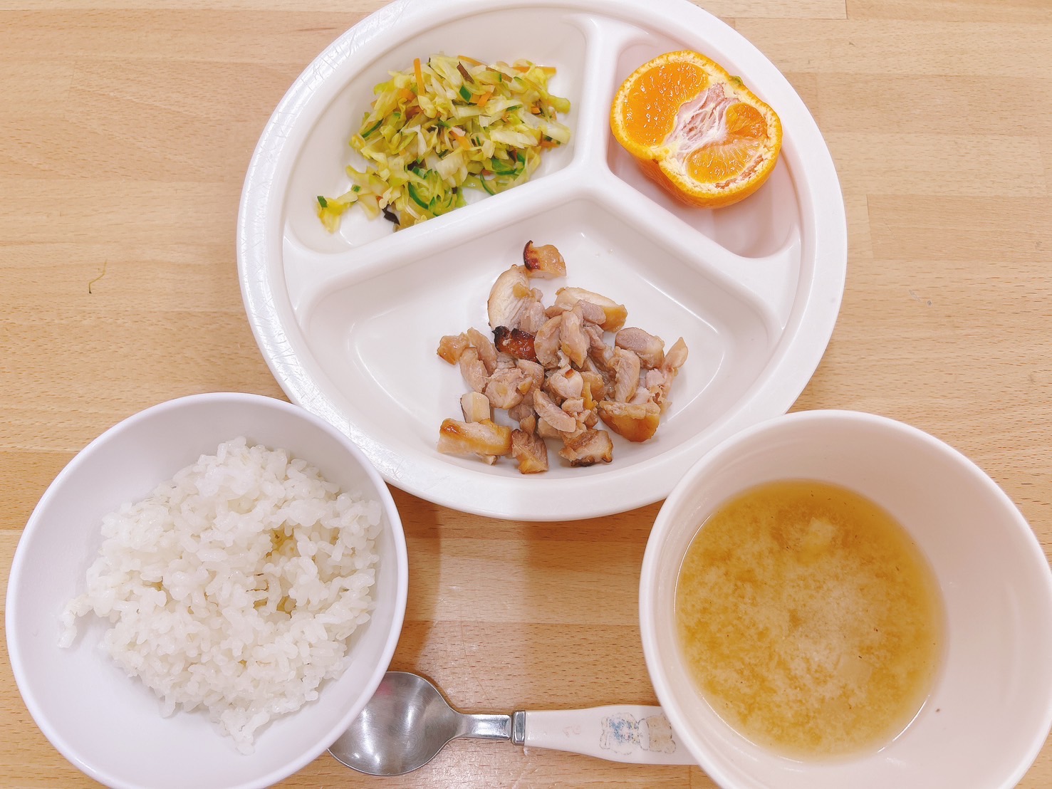 在園児向けのお知らせ 令和7年2月20日(木) 2025.02.20 🍚今日のお給食🍚 白飯 鶏肉の照り焼き 野菜の塩昆布和え みそ汁(大根・油揚げ) みかん🍊 《2歳児クラス》 《1歳児クラス》 《0歳児クラス》 🍎今日の一枚!🍎 🍒今日のおやつ🍒 ヨーグルト・菓子 この記事のタイトルとURLをコピーする 令和7年2月19日(水) 前の記事 令和7年2月21日(金) 次の記事