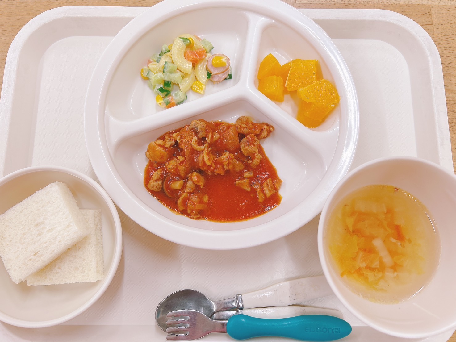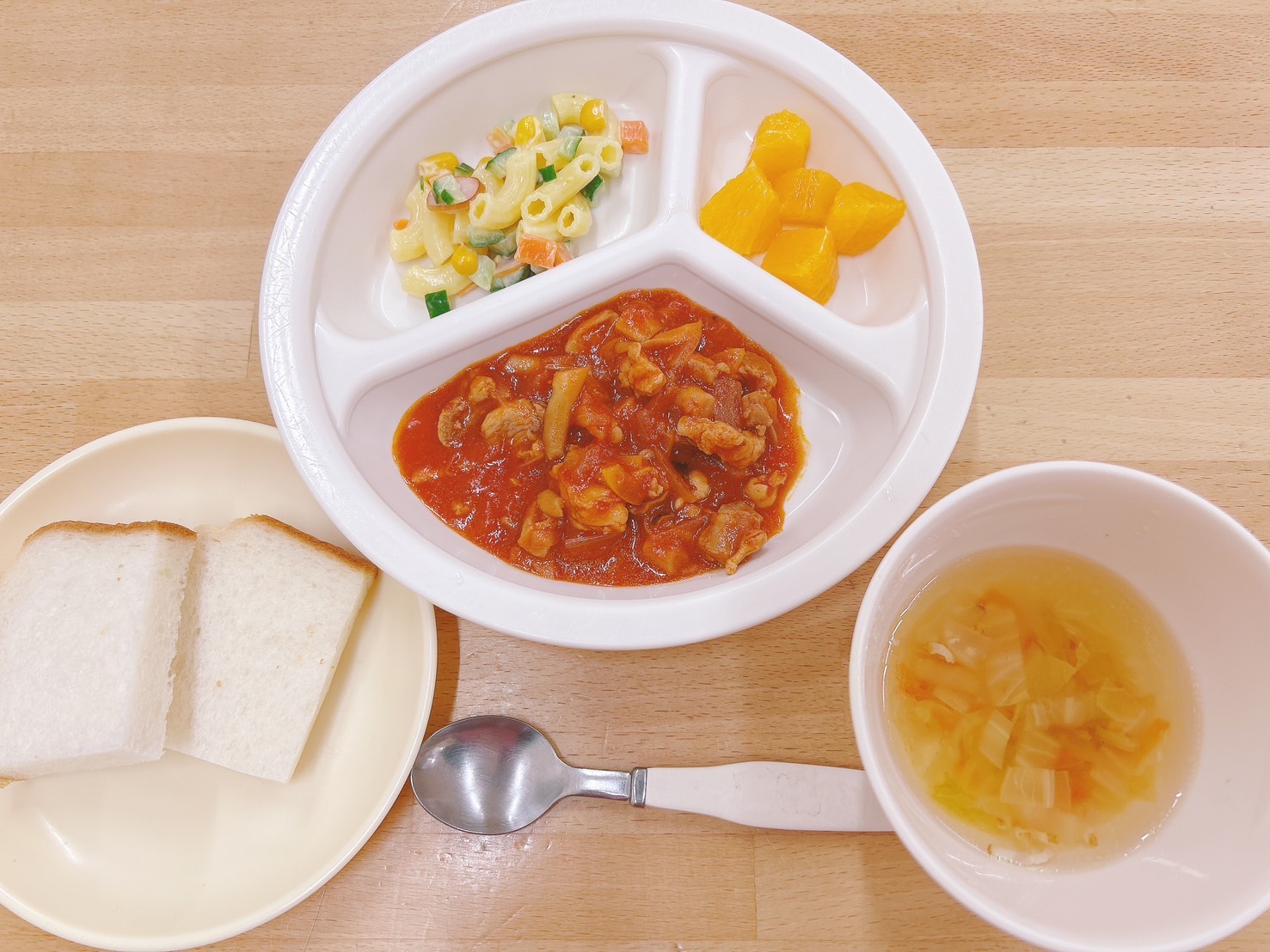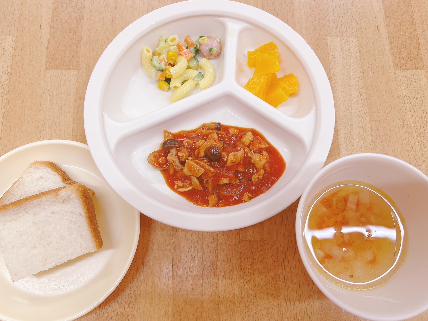 在園児向けのお知らせ 令和7年2月21日(金) 2025.02.21 🍚今日のお給食🍚 食パン 鶏肉のトマトソース煮 パスタとコロコロ野菜のサラダ 白菜スープ オレンジ🍊 《2歳児クラス》 《1歳児クラス》 《0歳児クラス》 🎶今日の一枚🎶 🍒今日のおやつ🍒 バナナ🍌 牛乳🥛 この記事のタイトルとURLをコピーする 令和7年2月20日(木) 前の記事 令和7年2月25日(火) 次の記事