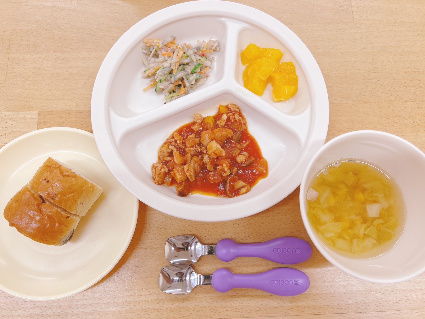 在園児向けのお知らせ 令和7年4月8日(火) 2025.04.08 🍚今日のお給食🍚 レーズンロール 鶏肉のトマトソース煮🍅 ごぼうサラダ パスタスープ オレンジ🍊 《2歳児クラス》 《1歳児クラス》 《0歳児クラス》 🍎今日の一枚!🍎 🍒今日のおやつ🍒 カレーうどん この記事のタイトルとURLをコピーする 令和7年4月7日(月) 前の記事 令和7年4月9日(水) 次の記事