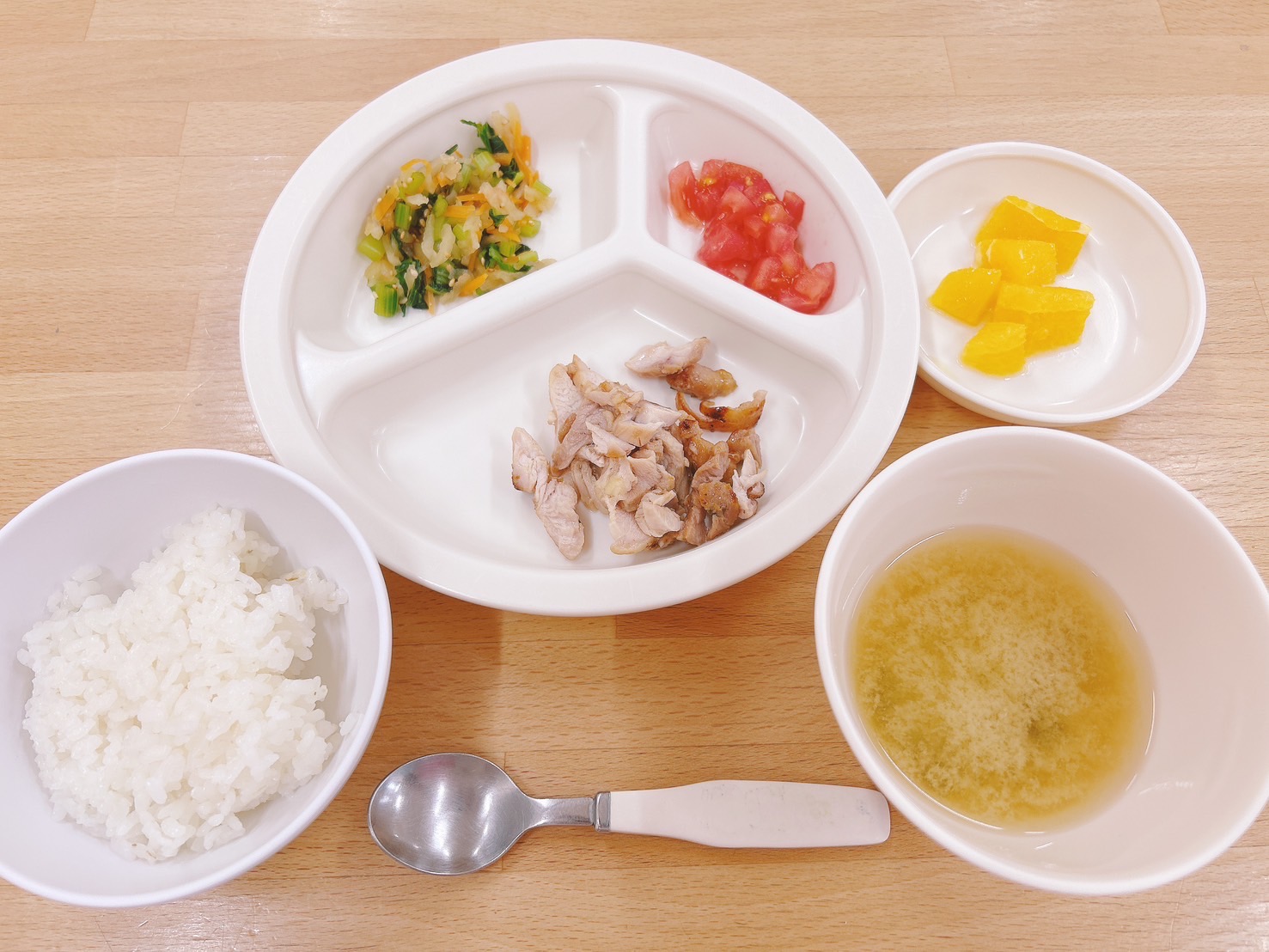 在園児向けのお知らせ 令和7年4月22日(火) 2025.04.22 🍚今日のお給食🍚 白飯 鶏肉の梅醤油焼き カットトマト🍅 小松菜と切干大根の胡麻酢和え みそ汁(わかめ・長ねぎ) オレンジ🍊 《2歳児クラス》 《1歳児クラス》 《0歳児クラス》 🍎今日の一枚!🍎 🍒今日のおやつ🍒 菓子・牛乳 この記事のタイトルとURLをコピーする 令和7年4月21日(月) 前の記事 令和7年4月23日(水) 次の記事