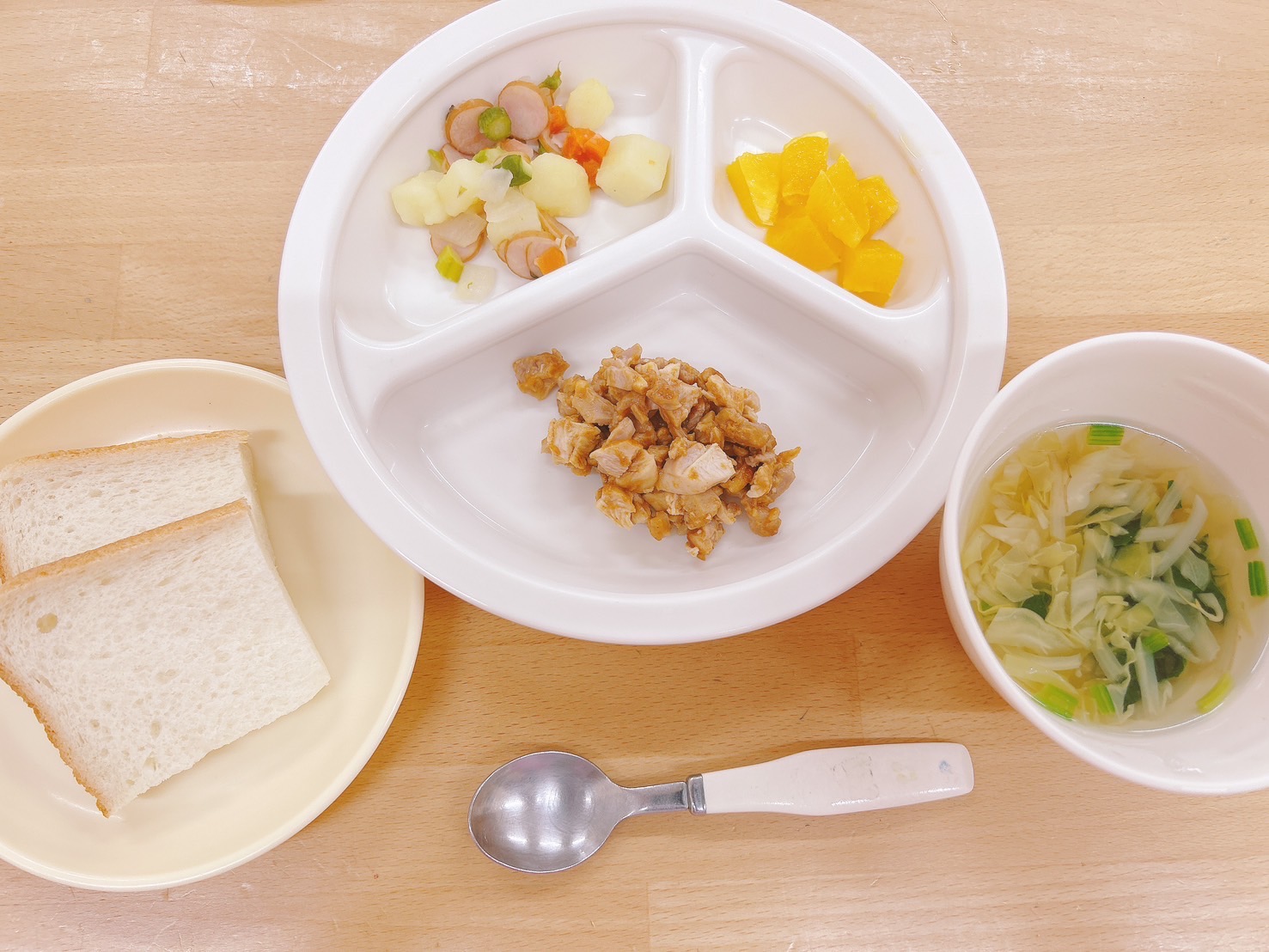在園児向けのお知らせ 令和7年5月13日(火) 2025.05.13 🍚今日のお給食🍚 食パン🍞 タンドリーチキン風 ジャーマンポテト 野菜スープ オレンジ🍊 《1歳児・2歳児クラス》 《0歳児クラス》 🍎今日の一枚!🍎 🍒今日のおやつ🍒 マカロニあべかわ・牛乳 この記事のタイトルとURLをコピーする 令和7年5月12日(月) 前の記事 令和7年5月14日(水) 次の記事
