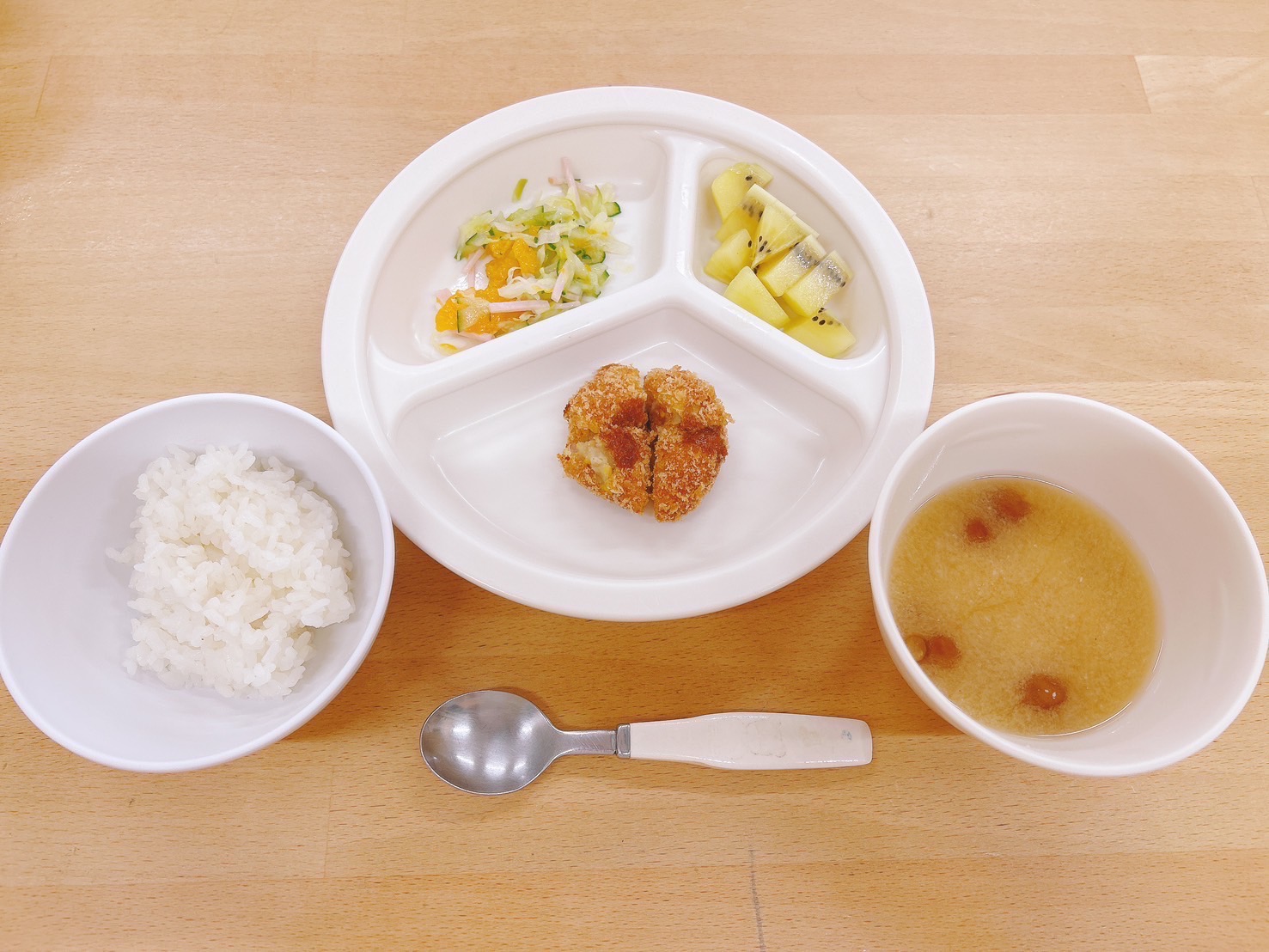 在園児向けのお知らせ 令和7年5月21(水) 2025.05.21 🍚今日のお給食🍚 白飯 ポテトコロッケ ハムサラダ みそ汁(なめこ・豆腐) キウイフルーツ🥝 《1歳児・2歳児》 《0歳児》 🎵今日の一枚🎵 🍒今日のおやつ🍒 バナナ🍌 この記事のタイトルとURLをコピーする 令和7年5月20日(火) 前の記事 令和7年5月22日(木) 次の記事