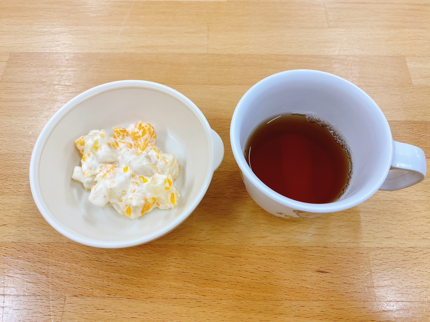 在園児向けのお知らせ 令和7年6月2日(月) 2025.06.02 🍚今日のお給食🍚 白飯 鶏肉の照焼き カットトマト🍅 卯の花の炒り煮 みそ汁(ほうれん草・麩) グレープフルーツ 《1・2歳児クラス》 《0歳児クラス》 🍎今日の一枚!🍎 🍒今日のおやつ🍒 フルーツクリーム・麦茶 この記事のタイトルとURLをコピーする 令和7年5月30日(金) 前の記事 令和7年6月3日(火) 次の記事