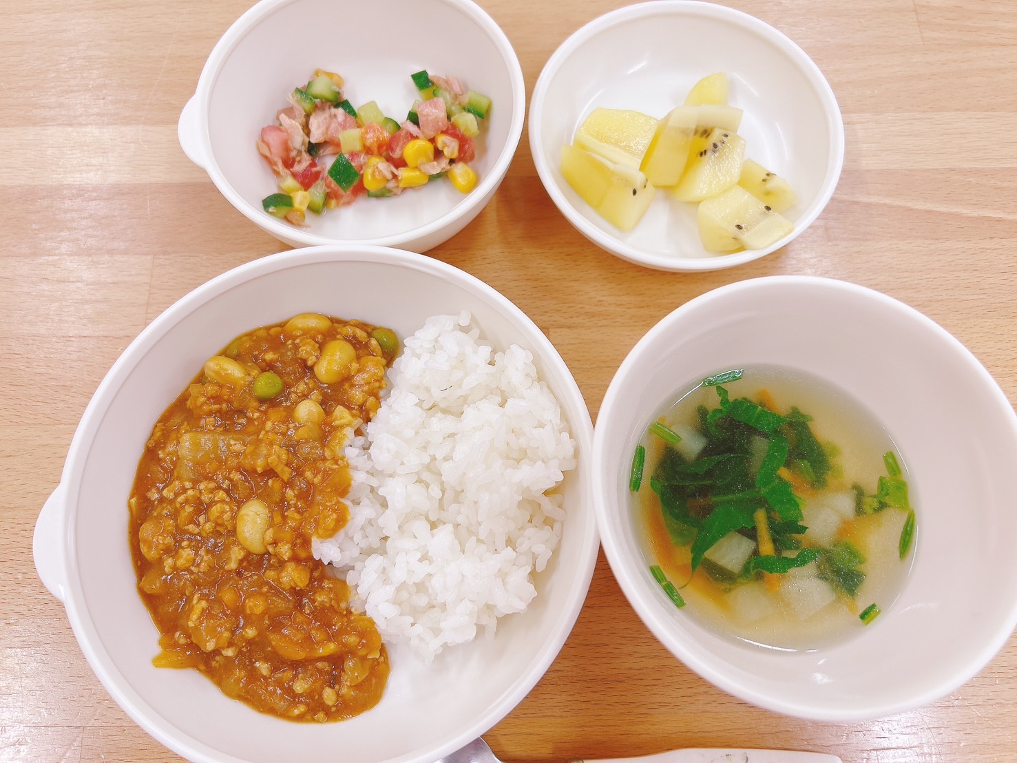 在園児向けのお知らせ 令和7年6月4日(水) 2025.06.04 🍚今日のお給食🍚 白飯 豆まめキーマカレー🫘 コロコロサラダ コンソメスープ キウイフルーツ🥝 《2歳児クラス》 《1歳児クラス》 《0歳児クラス》 🍎今日の一枚!🍎 🍒今日のおやつ🍒 塩焼きそば・麦茶 この記事のタイトルとURLをコピーする 令和7年6月3日(火) 前の記事 令和7年6月5日(木) 次の記事