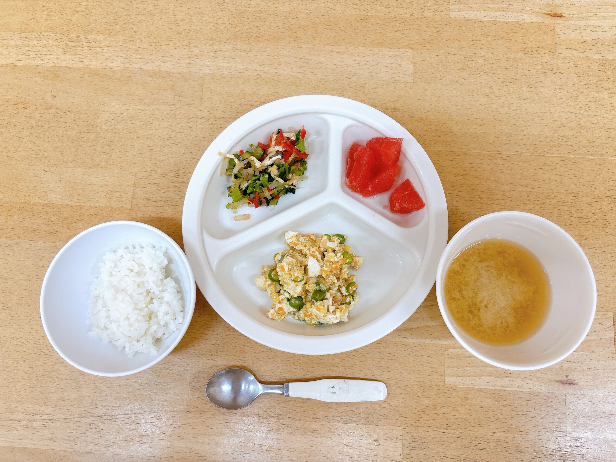 在園児向けのお知らせ 令和7年6月11日(水) 2025.06.11 🍚今日のお給食🍚 白飯 炒り豆腐 野菜のおかか和え みそ汁(えのき茸・キャベツ) グレープフルーツ 《1・2歳児クラス》 《0歳児クラス》 🎶今日の一枚🎶 🍒今日のおやつ🍒 もちもちおやき この記事のタイトルとURLをコピーする 令和7年6月10日(火) 前の記事 令和7年6月12日(木) 次の記事