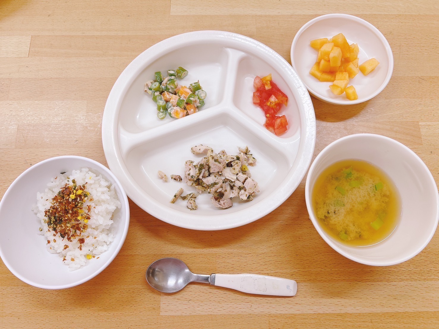 在園児向けのお知らせ 令和7年6月23日(月) 2025.06.23 🍚今日のお給食🍚 ふりかけごはん チキンマリネソテー カットトマト🍅 いんげんのツナマヨ和え みそ汁(じゃがいも・小松菜) メロン🍈 《1・2歳児クラス》 《0歳児クラス》 🍎今日の一枚!🍎 🍒今日のおやつ🍒 牛乳・菓子 この記事のタイトルとURLをコピーする 令和7年6月20日(金) 前の記事 令和7年6月24日(火) 次の記事