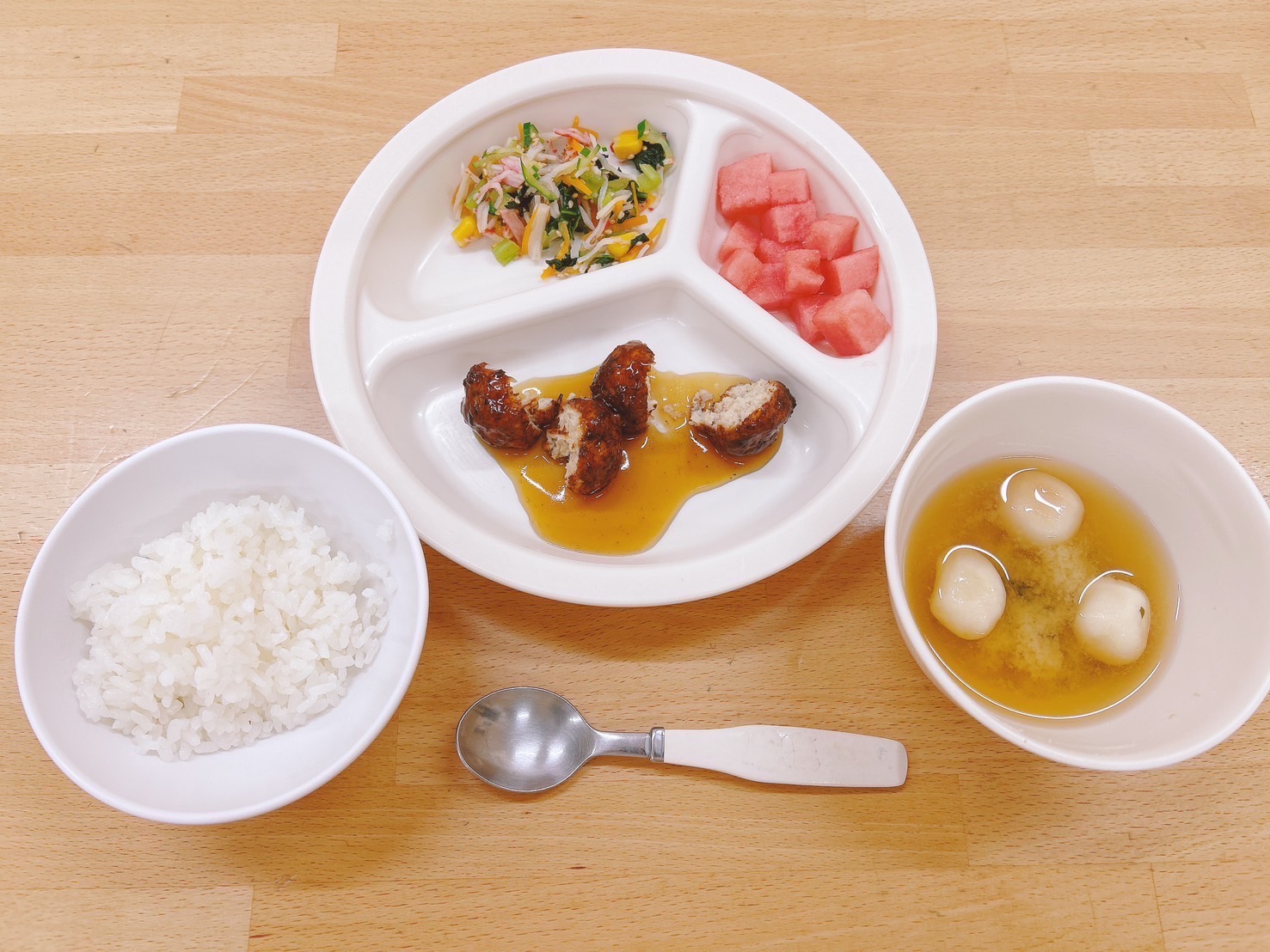 在園児向けのお知らせ 令和7年6月26日(木) 2025.06.26 🍚今日のお給食🍚 白飯 肉団子の甘酢あんかけ かまぼこと小松菜の和え物 みそ汁(わかめ・麩) すいか🍉 《1・2歳児クラス》 《0歳児クラス》 🍎今日の一枚!🍎 🍒今日のおやつ🍒 バナナ🍌・牛乳 この記事のタイトルとURLをコピーする 令和6年6月25日(水) 前の記事 令和7年6月27日(金) 次の記事