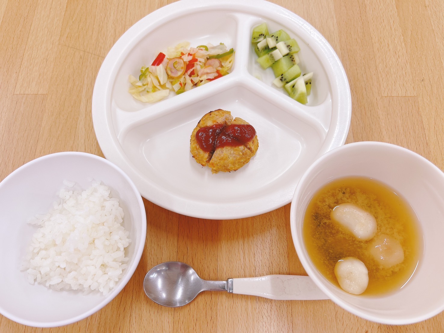 在園児向けのお知らせ 令和7年7月1日(火) 2025.07.01 🍚今日のお給食🍚 白飯 ハンバーグ 野菜ソテー みそ汁(小松菜・麩) キウイフルーツ🥝 《1・2歳児クラス》 《0歳児クラス》 🍎今日の一枚!🍎 🍒今日のおやつ🍒 りんごジュース🍎・菓子 この記事のタイトルとURLをコピーする 令和7年6月30日(月) 前の記事 令和7年7月2日(水) 次の記事