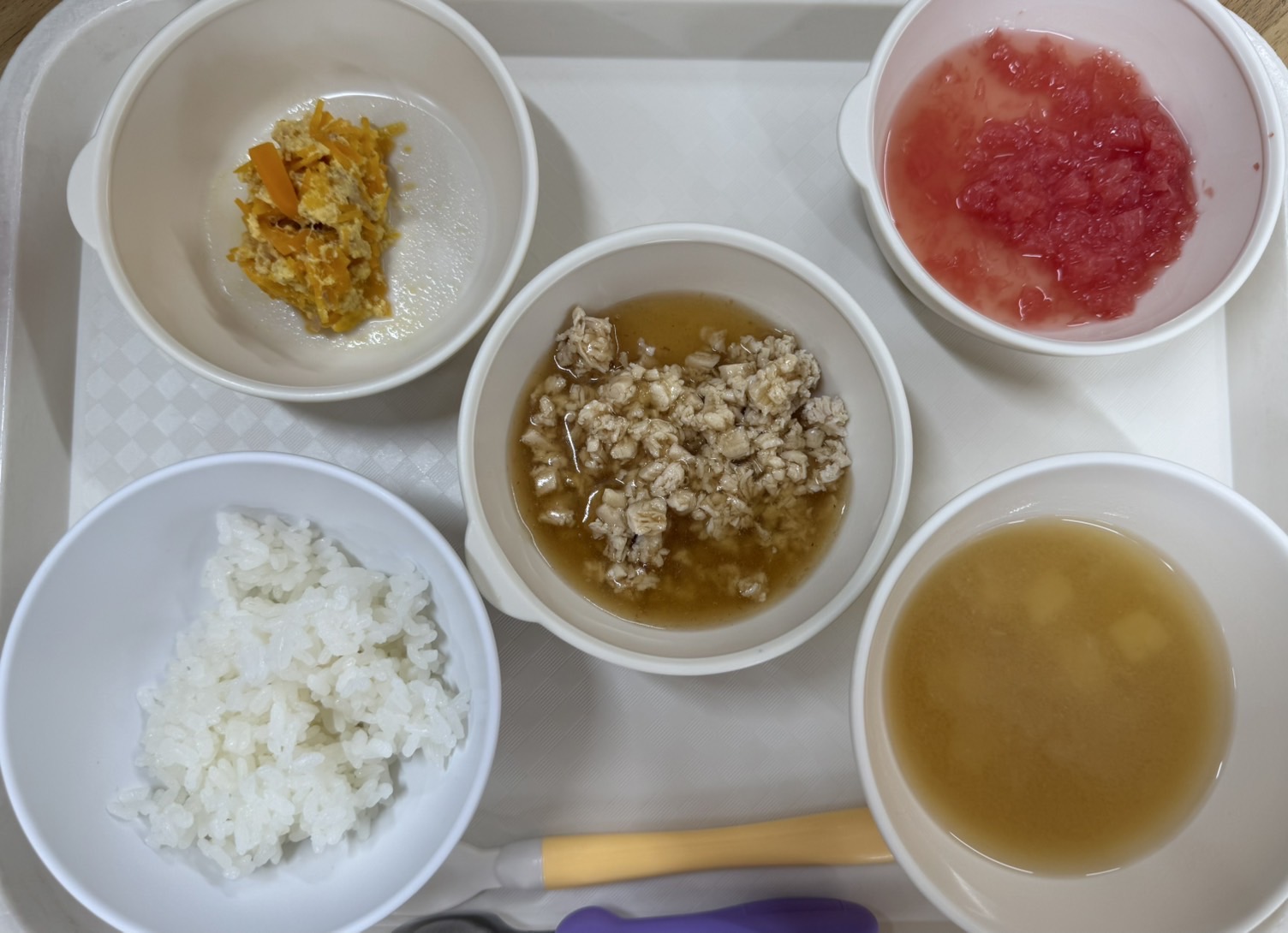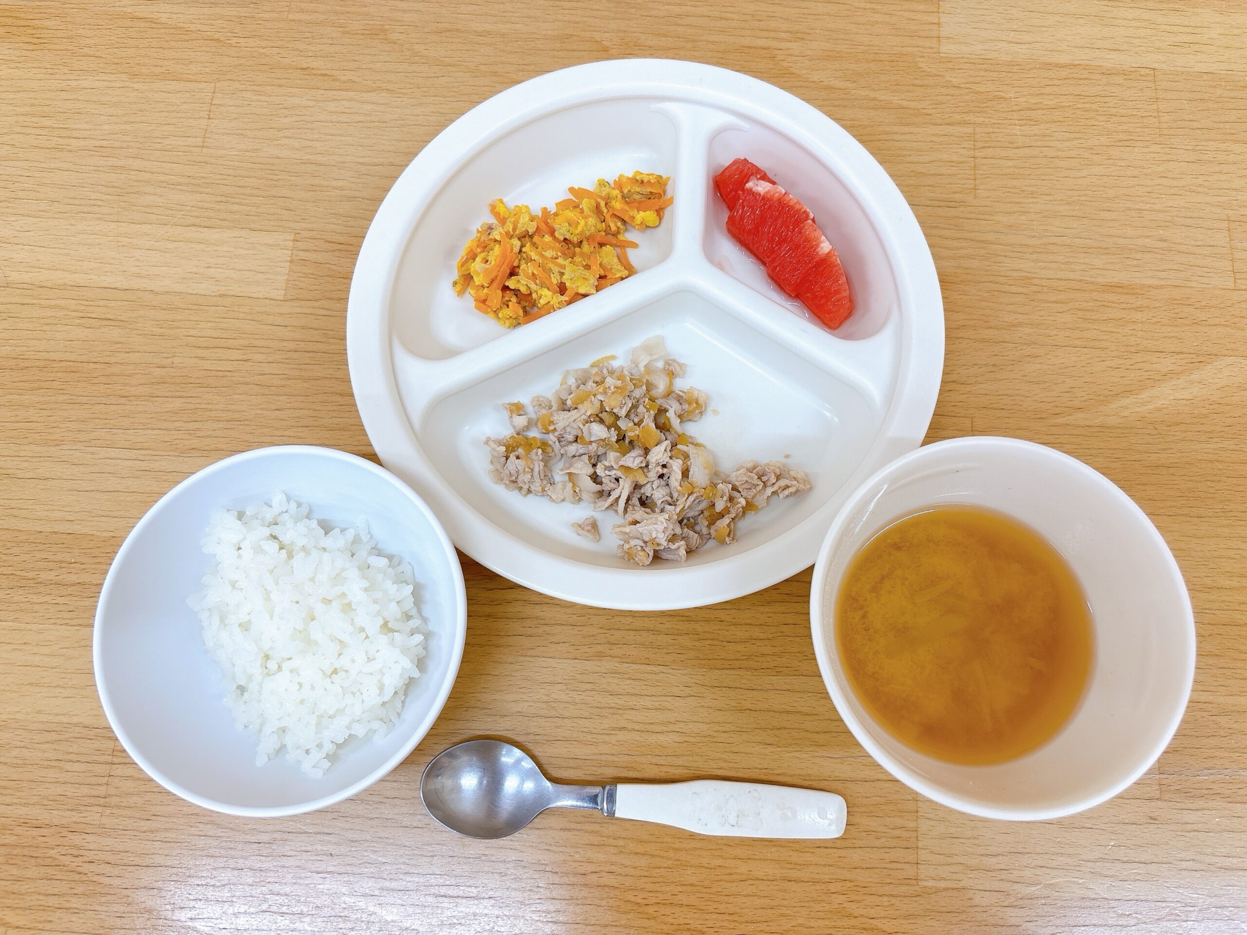 在園児向けのお知らせ 令和7年7月11日(金) 2025.07.11 🍚今日のお給食🍚 白飯 豚肉のねぎソース和え 人参しりしり🥕 みそ汁(じゃがいも・玉ねぎ) グレープフルーツ 《1・2歳児クラス》 《0歳児クラス》 🍎今日の一枚!🍎 🍒今日のおやつ🍒 しょうゆらーめん🍜 《0歳児クラス》 この記事のタイトルとURLをコピーする 令和7年7月10日(木) 前の記事 令和7年7月14日(月) 次の記事