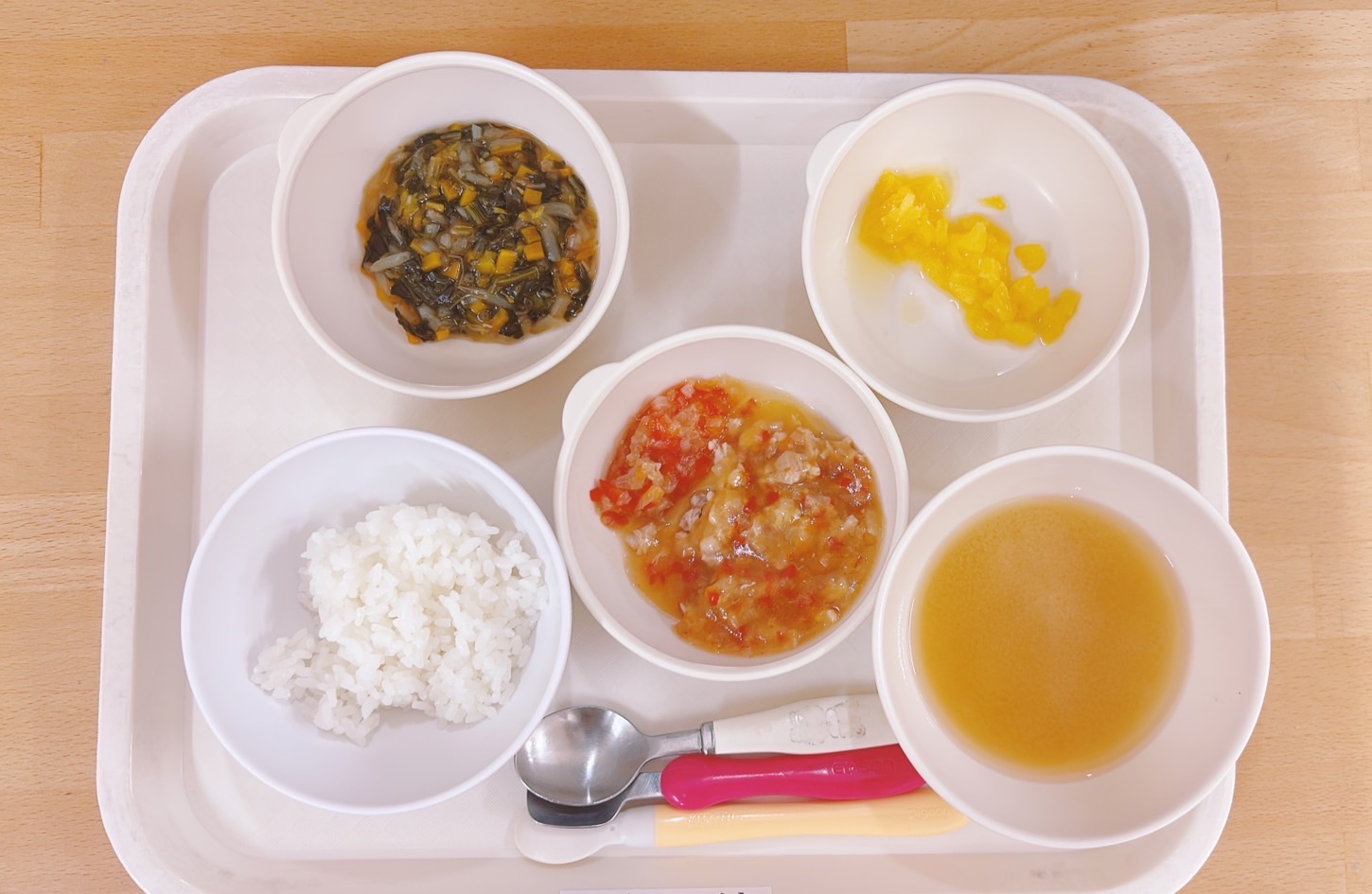 在園児向けのお知らせ 令和7年8月18日(月) 2025.08.18 🍚今日のお給食🍚 白飯 豚肉の甘辛焼き ほうれん草ともやしのナムル みそ汁(大根・油揚げ) オレンジ🍊 《1・2歳児クラス》 《0歳児クラス》 🍎今日の一枚!🍎 🍒今日のおやつ🍒 菓子・牛乳 この記事のタイトルとURLをコピーする 令和7年8月8日(金) 前の記事 令和7年8月19日(火) 次の記事