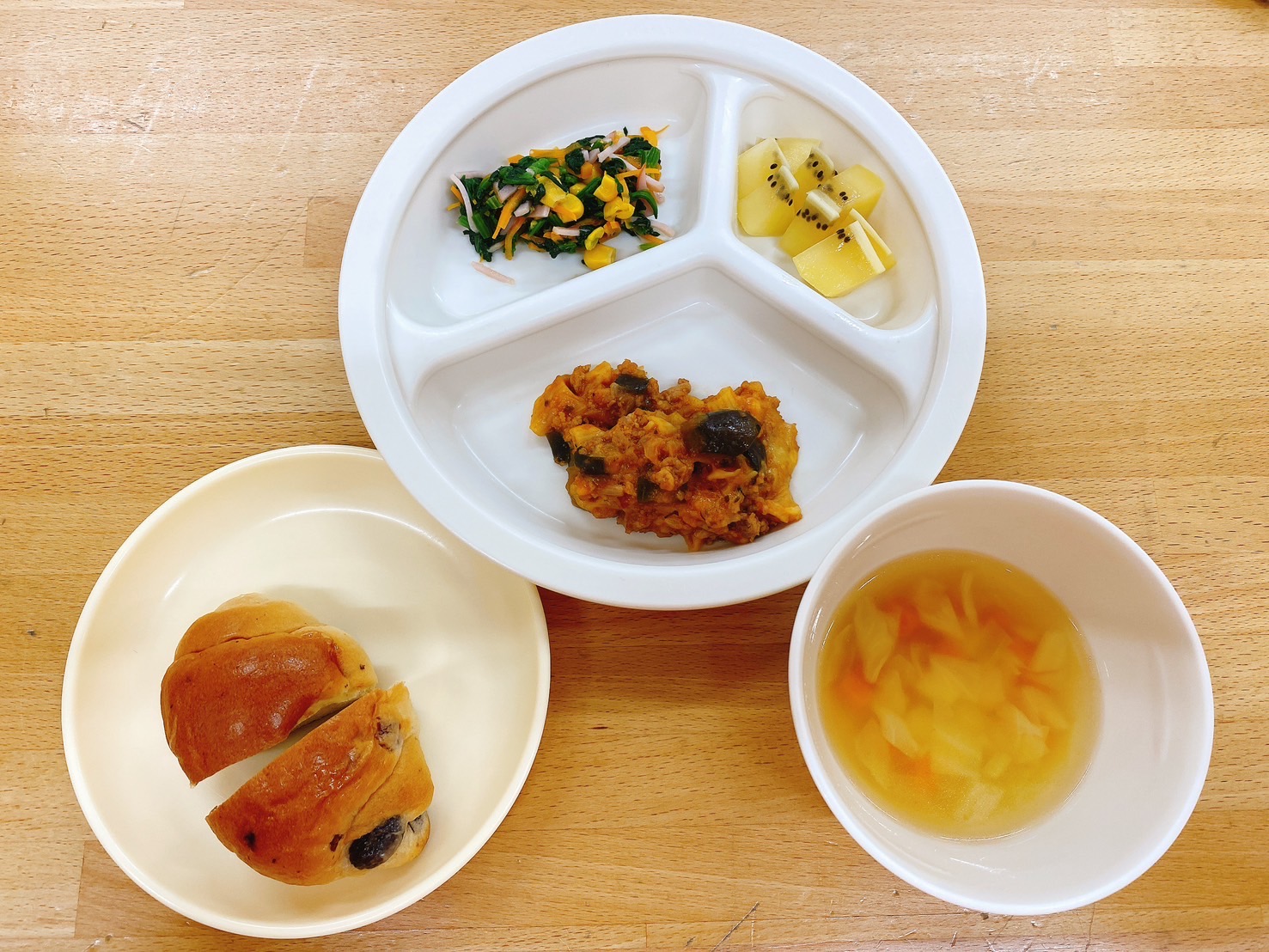 在園児向けのお知らせ 令和7年8月19日(火) 2025.08.19 🍚今日のお給食🍚 レーズンロール🍇 なすとペンネのグラタン🍆 ほうれん草とコーンのサラダ ポテトスープ キウイフルーツ🥝 《1・2歳児クラス》 《0歳児クラス》 🍎今日の一枚!🍎 🍒今日のおやつ🍒 牛乳・菓子 この記事のタイトルとURLをコピーする 令和7年8月18日(月) 前の記事 令和7年8月20日(水) 次の記事