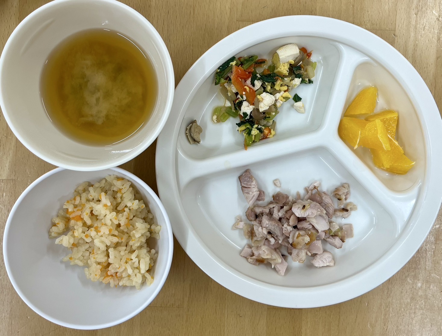 在園児向けのお知らせ 令和7年9月16日(火) 2025.09.16 🍚今日のお給食🍚 人参ごはん🥕 鶏のねぎ塩焼き 豆腐と小松菜のチャンプルー みそ汁 オレンジ🍊 《1.2歳児クラス》 《0歳児クラス》 🍒今日のおやつ🍒 ヨーグルト・お菓子 この記事のタイトルとURLをコピーする 令和7年9月12日(金) 前の記事 令和7年9月17日(水) 次の記事