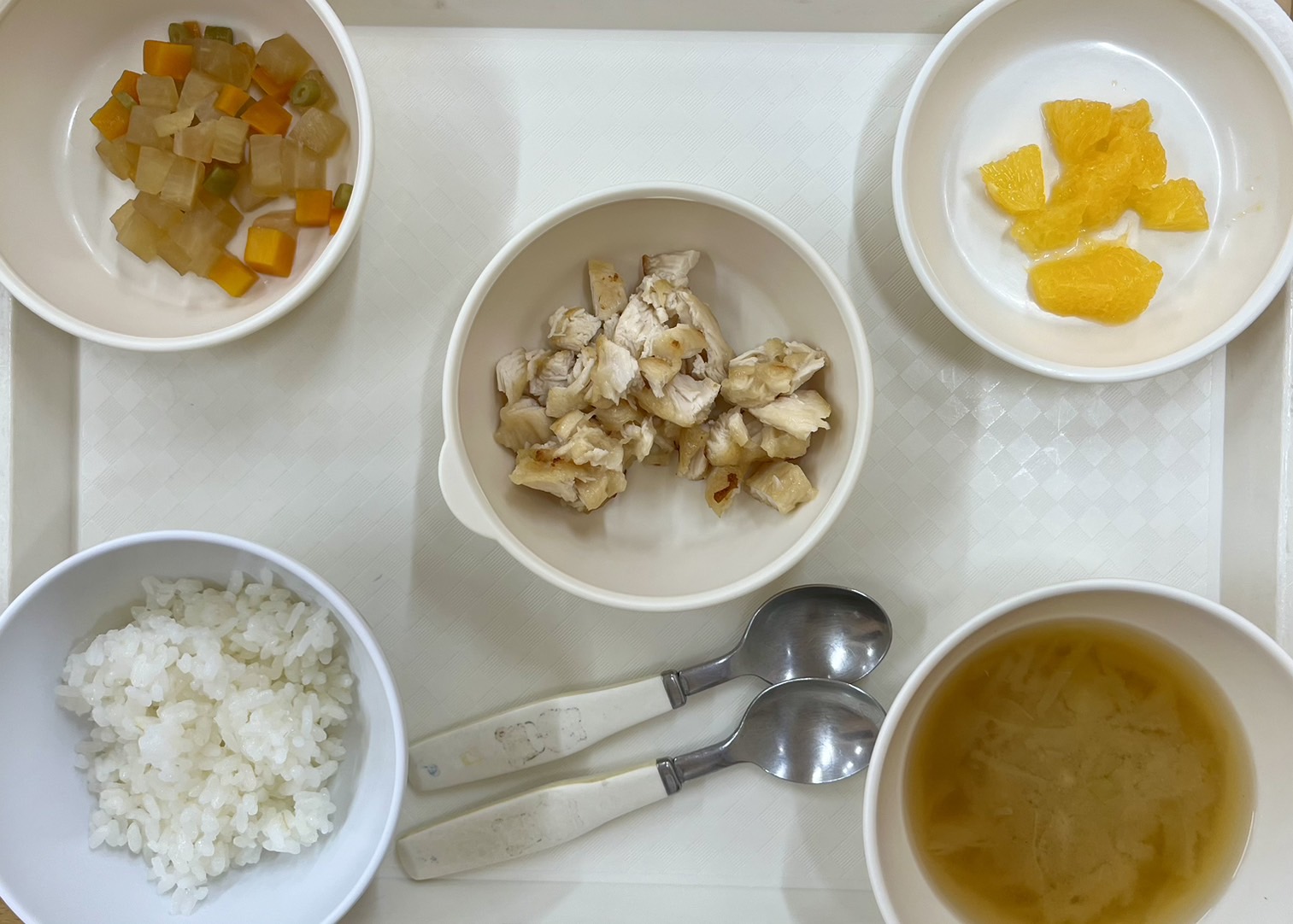 在園児向けのお知らせ 令和7年11月10日(月) 2025.11.10 🍚今日のお給食🍚 ごはん 鶏の香味焼き 大根と油揚げの煮物 みそ汁 オレンジ🍊 《1・2歳児クラス》 《0歳児クラス》 🍠今日のおやつ🍎 さつま芋とりんごの甘煮 この記事のタイトルとURLをコピーする 令和7年11月7日(金) 前の記事 令和7年11月12日(水) 次の記事