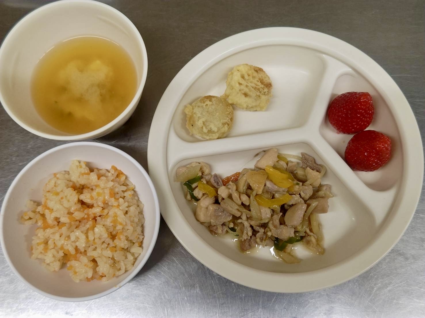 在園児向けのお知らせ 令和8年1月7日(水) 2026.01.07 🍚今日のお給食🍚 人参ごはん 鶏肉の生姜焼き さつま芋のてんぷら みそ汁 いちご🍓 《1・2歳児クラス》 《0歳児クラス》 ❄️今日の一枚❄️ 🍒今日のおやつ🍒 菓子・牛乳🥛 この記事のタイトルとURLをコピーする 令和8年1月6日(火) 前の記事 令和8年1月8日(木) 次の記事