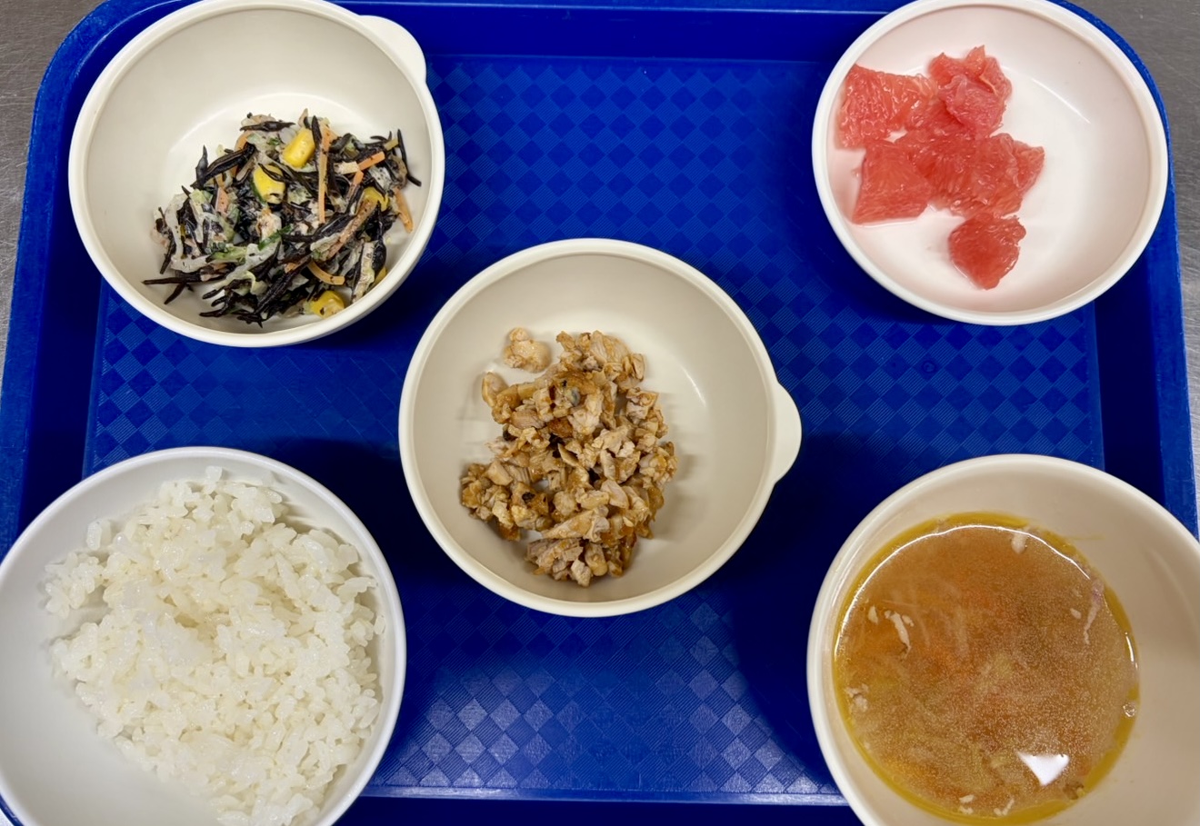 在園児向けのお知らせ 令和8年2月25日(水) 2026.02.25 🍚今日のお給食🍚 ごはん タンドリーチキン ツナとひじきのマヨネーズ和え 春雨スープ グレープフルーツ 《1・2歳児クラス》 《0歳児クラス》 ❄️今日の一枚❄️ 🍘今日のおやつ🍘 菓子・牛乳🥛 この記事のタイトルとURLをコピーする 令和8年2月24日(火) 前の記事 令和8年2月26日(木) 次の記事