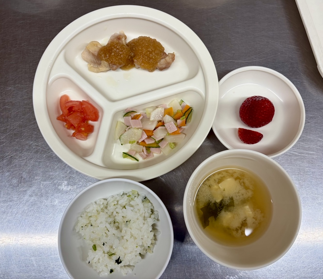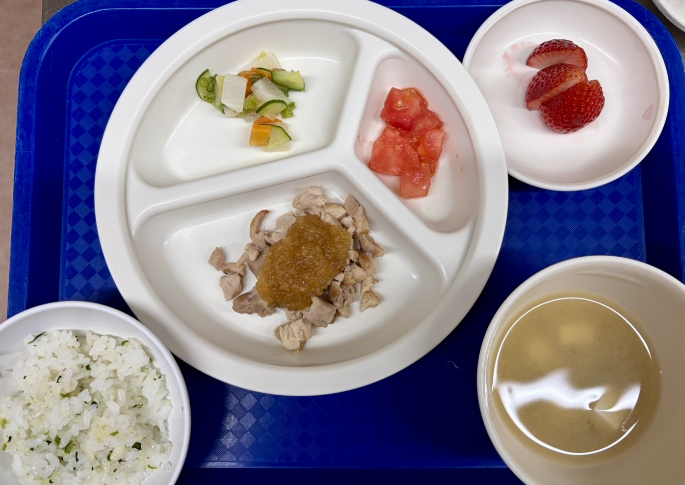 在園児向けのお知らせ 令和8年3月19日(木) 2026.03.19 🍚今日のお給食🍚 菜飯 鶏の和風ソテー カットトマト🍅 ハムとかぶのさっぱりサラダ みそ汁 いちご🍓 《1・2歳児クラス》 《0歳児クラス》 ❄️今日の一枚❄️ 🍘今日のおやつ🍘 ぼたもち風 この記事のタイトルとURLをコピーする 令和8年3月18日(水) 前の記事 令和8年3月23日(月) 次の記事